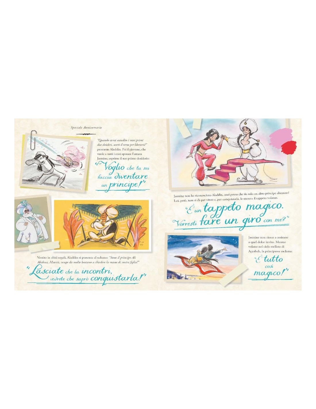 Il Genio della Lampada, la principessa Jasmine e il ladruncolo buono promettono ancora emozioni da… mille e una notte! La storia di Aladdin della collana Speciale anniversario Disney100 presenta bozzetti inediti e originali, le citazioni tratte dalle scene più belle e la storia illustrata del film. Un volume da collezione, con contenuti inediti e a tiratura limitata - disponibile solo per il 2023, con una copertina deluxe per i suoi effetti olografici. Età di lettura: da 6 anni.