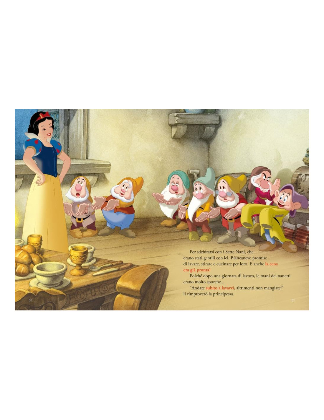 Il libro narra l'indimenticabile storia di Biancaneve e i Sette Nani, primo Classico Disney. Il formato del volume è ormai consolidato e riconosciuto, proprio della collana storica I Capolavori Disney, in cui le illustrazioni a piena pagina coinvolgono il lettore accompagnandolo in mondi fantastici. Età di lettura: da 5 anni.