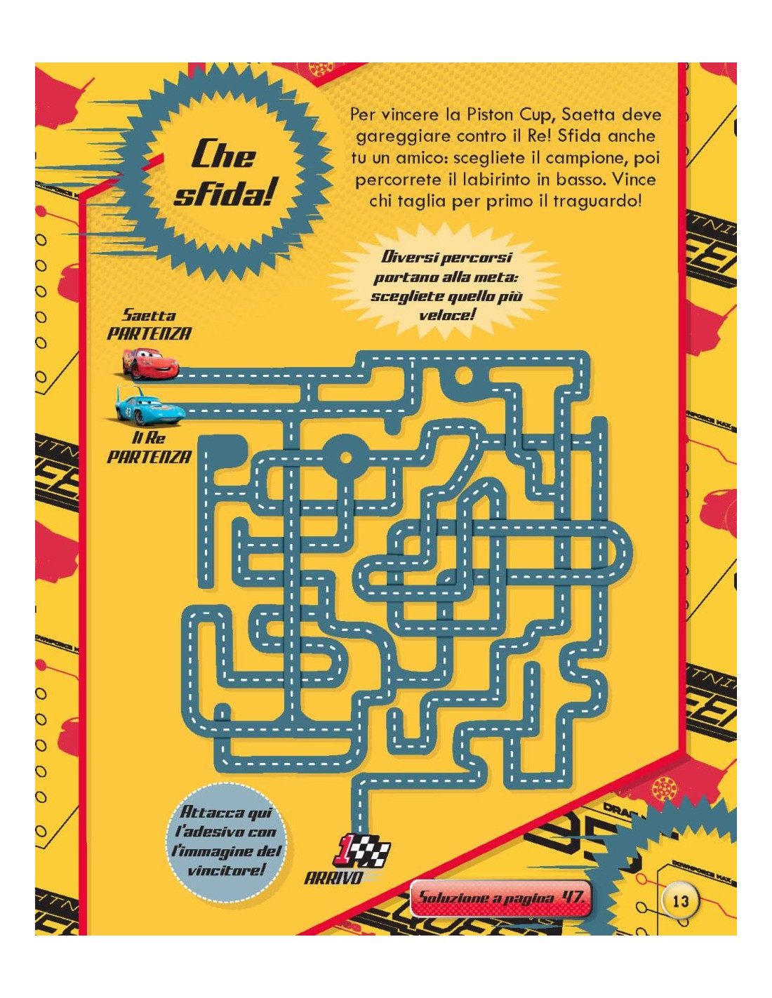 Un albo attivo dedicato ai personaggi di Cars e alle loro avventure tra le strade di Radiator Springs, con tanti giochi, labirinti, cruciverba, codici, disegni da colorare, trova le differenze e più di 1000 adesivi da utilizzare per completare le attività Età di lettura: da 5 anni.