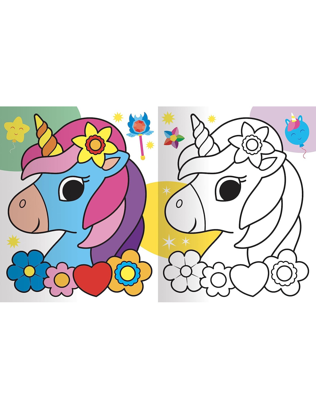 Un album da colorare con soggetti amatissimi da bambini e bambine: gli unicorni. Nella pagina di sinistra il modello, in quella di destra il soggetto da colorare. Le immagini proposte sono di grande effetto, ma allo stesso tempo semplici, con pochi dettagli e con contorni ben definiti, perfette quindi anche per i più piccoli. Età di lettura: da 4 anni.