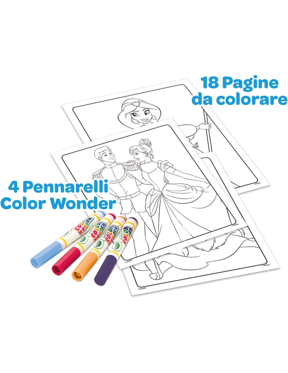 SET COLORING COLOR WONDER: contiene 18 Pagine da Colorare e 4 Pennarelli senza macchia Color Wonder