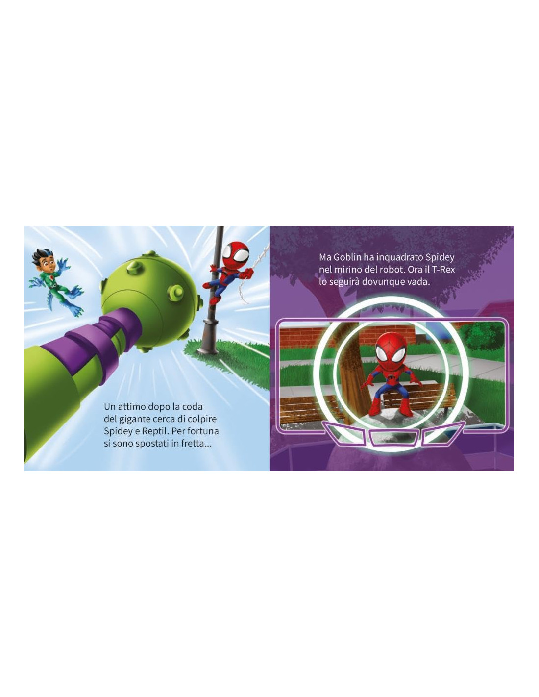 Un titolo novità dedicato ai personaggi di Spidey e i suoi fantastici amici. Green Goblin si aggira per le strade di New York con un gigantesco dinosauro robot, pronto a seminare distruzione. Toccherà a Spidey e ai suoi amici a fermare il suo folle piano. Una nuova avventura per la storica collana di libri quadrati, perfetti per la prima biblioteca dei bambini. Età di lettura: da 2 anni.