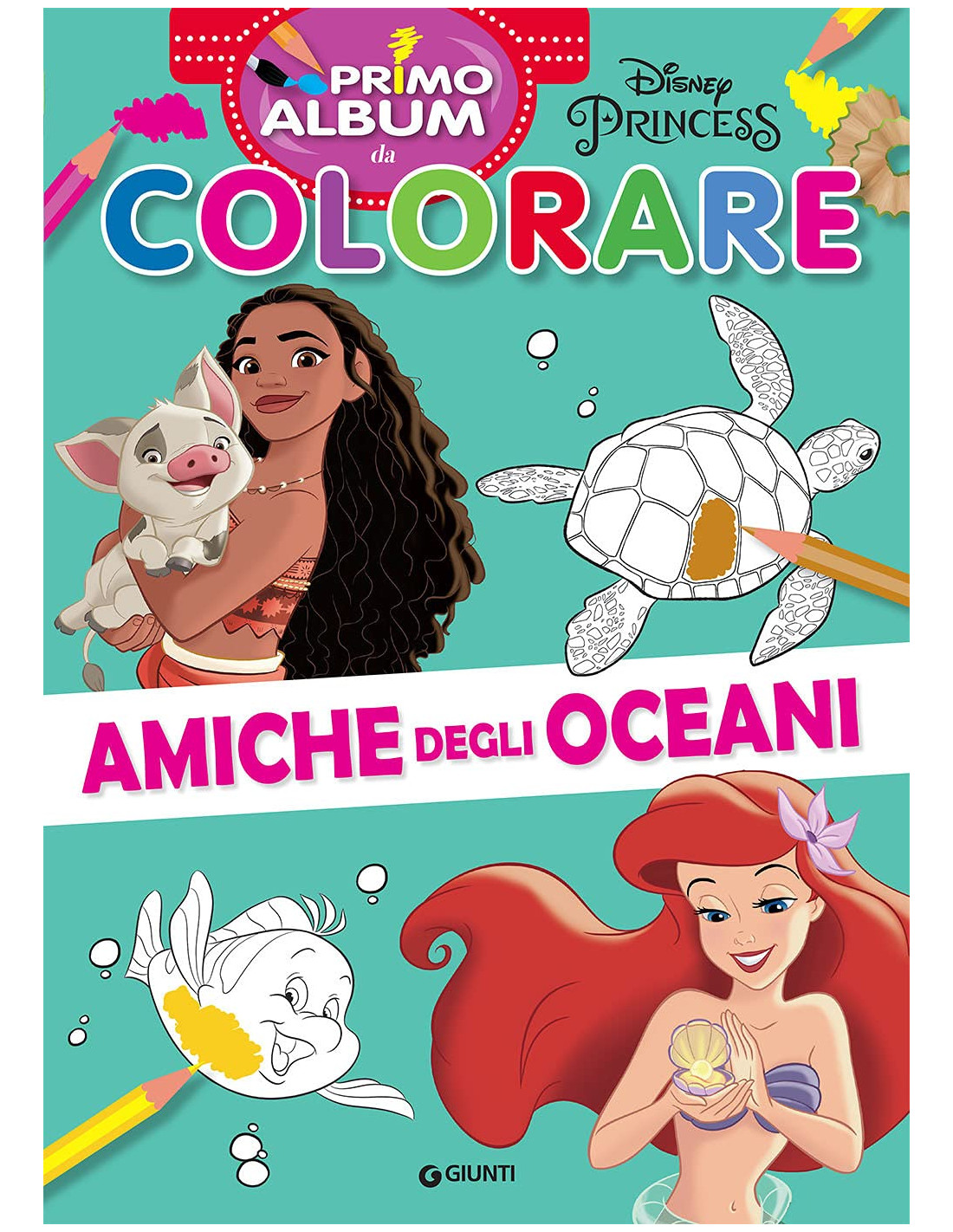 Disegni grandi e con campiture ampie per questo primo album da colorare studiato per i più piccini. Questo volume è dedicato alla Sirenetta Ariel e a Vaiana di Oceania, le principesse che più amano il mare e che con i loro amici ci insegnano a proteggerlo. Età di lettura: da 3 anni.