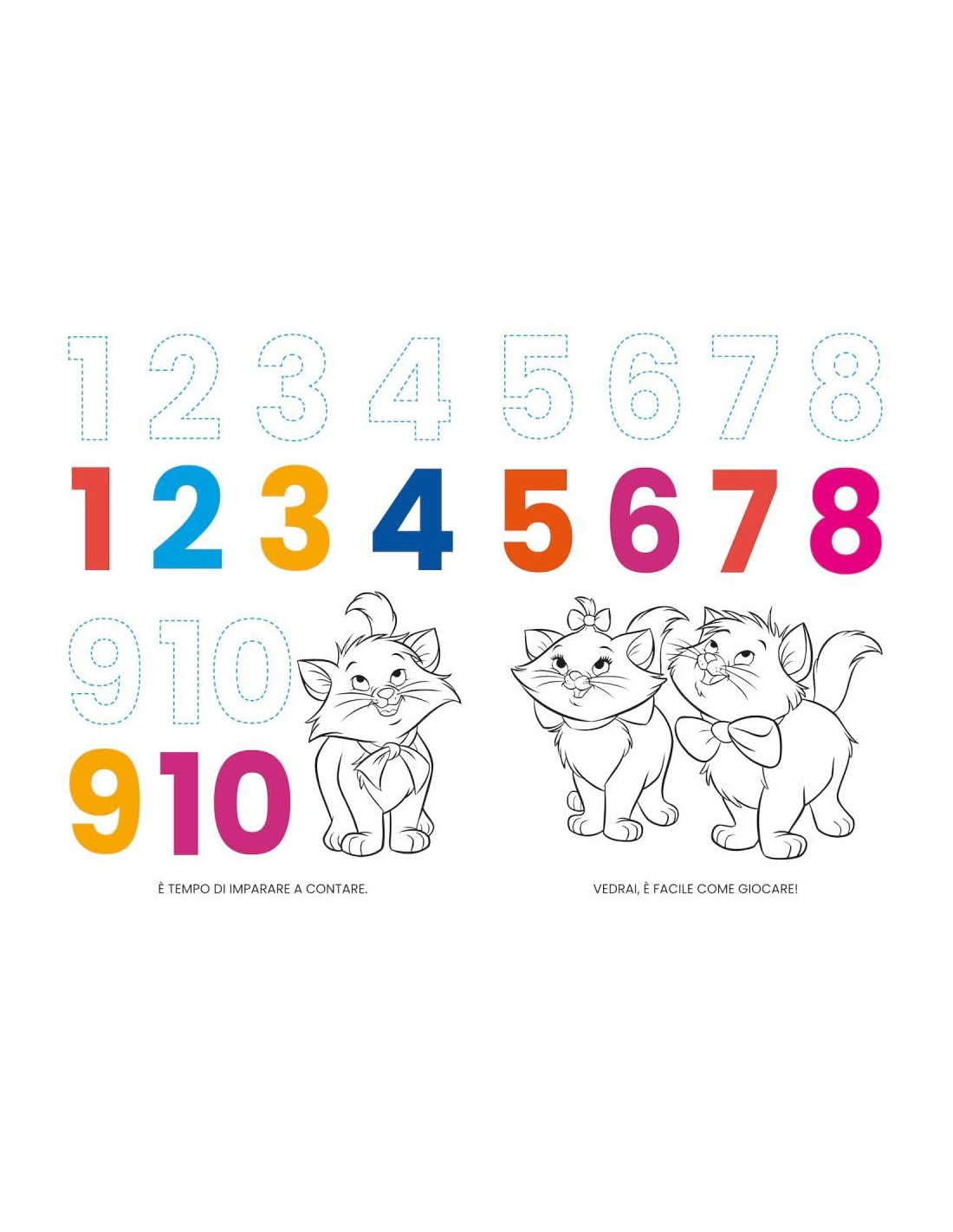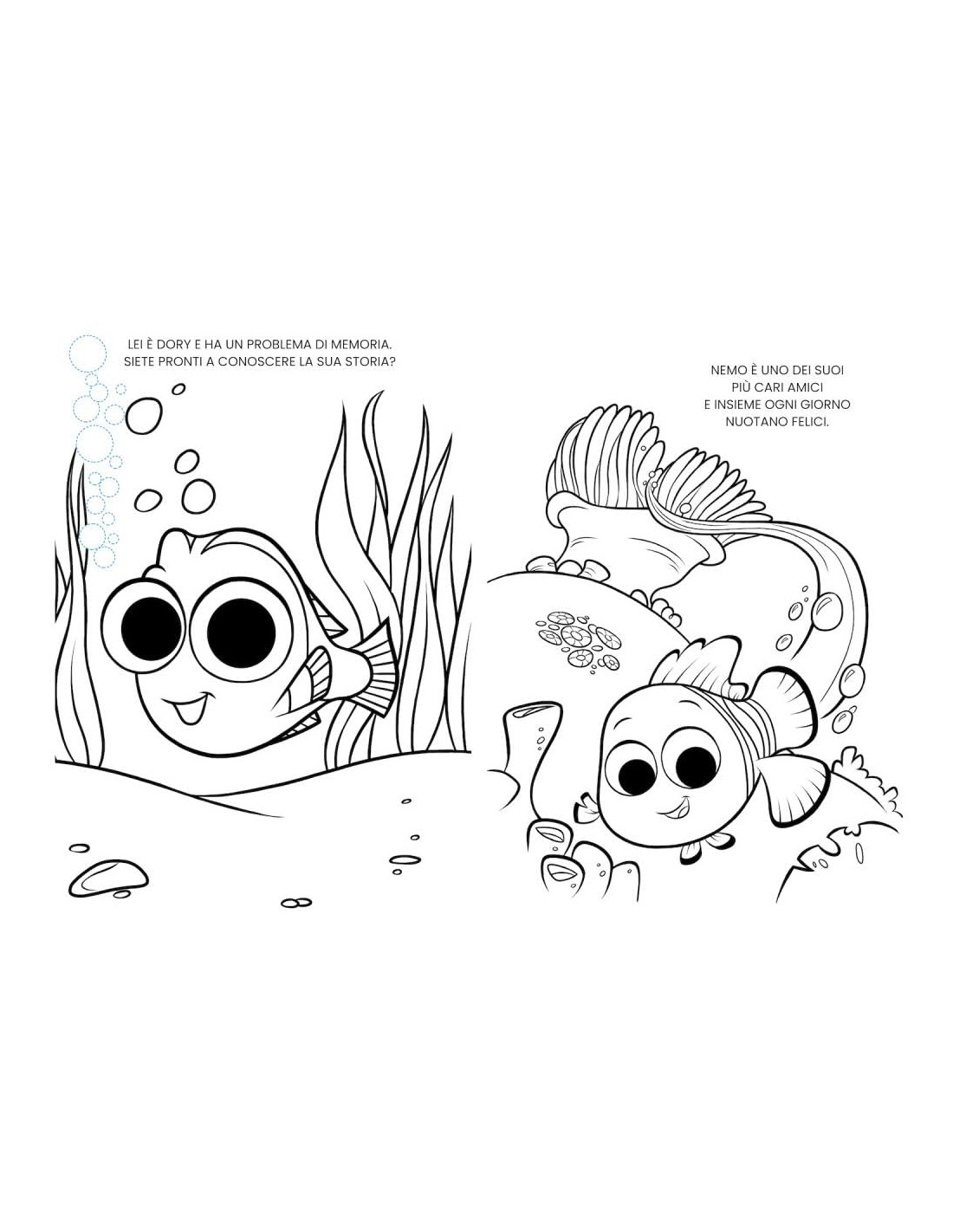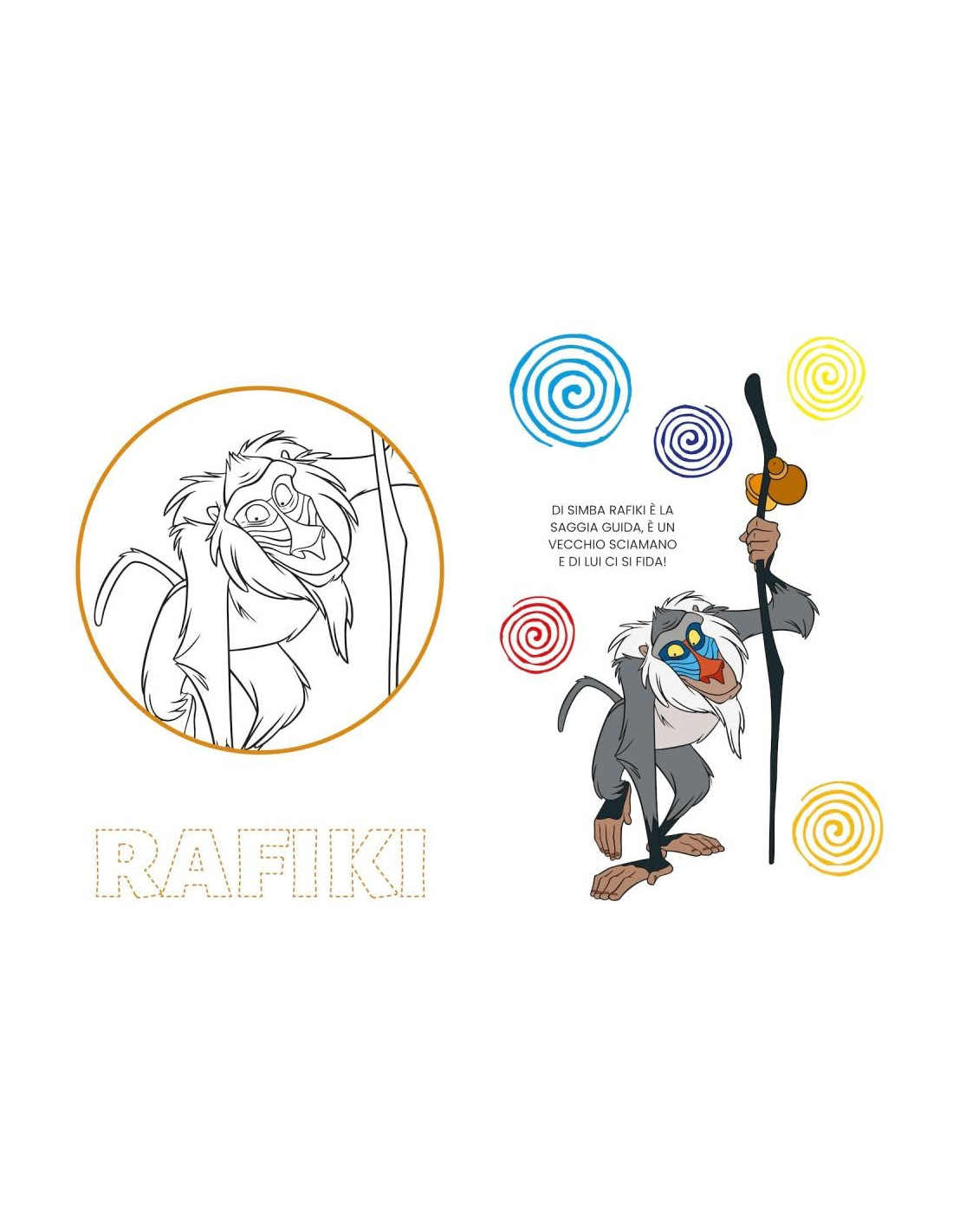 Albo di 48 pagine a colori, da disegnare e colorare, con testi in rima, con illustrazioni e scritte da ricalcare e completare. Questo libro è dedicato agli intramontabili Simba, Nemo, i mici de Gli Aristogatti e i cagnolini de La Carica dei 101. Età di lettura: da 4 anni