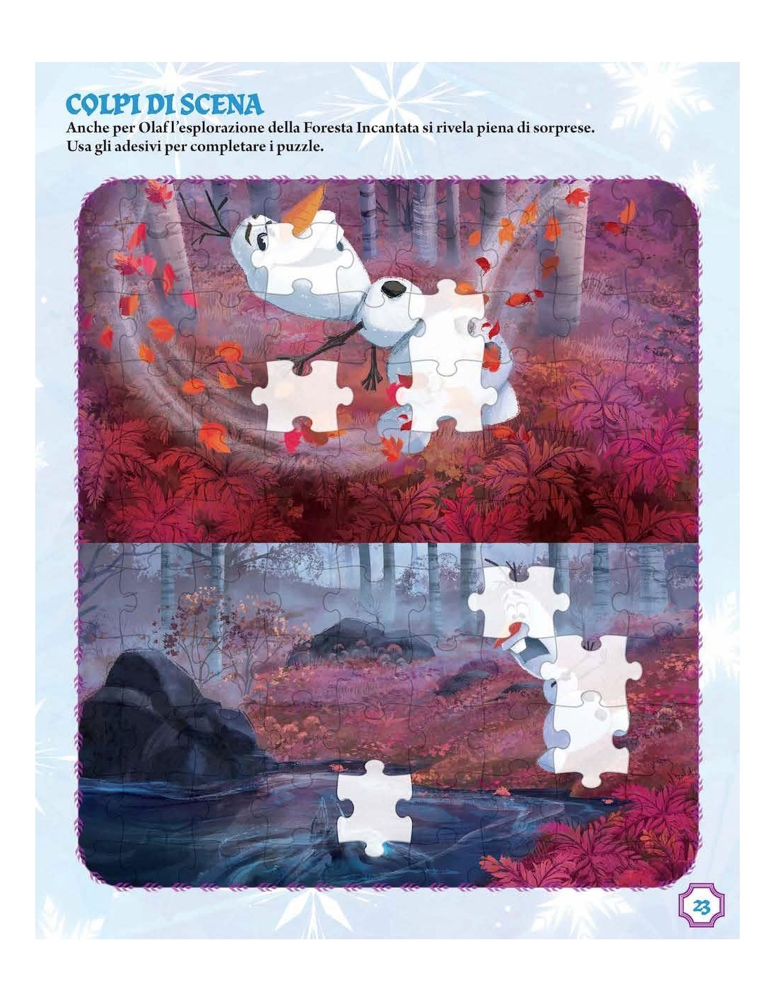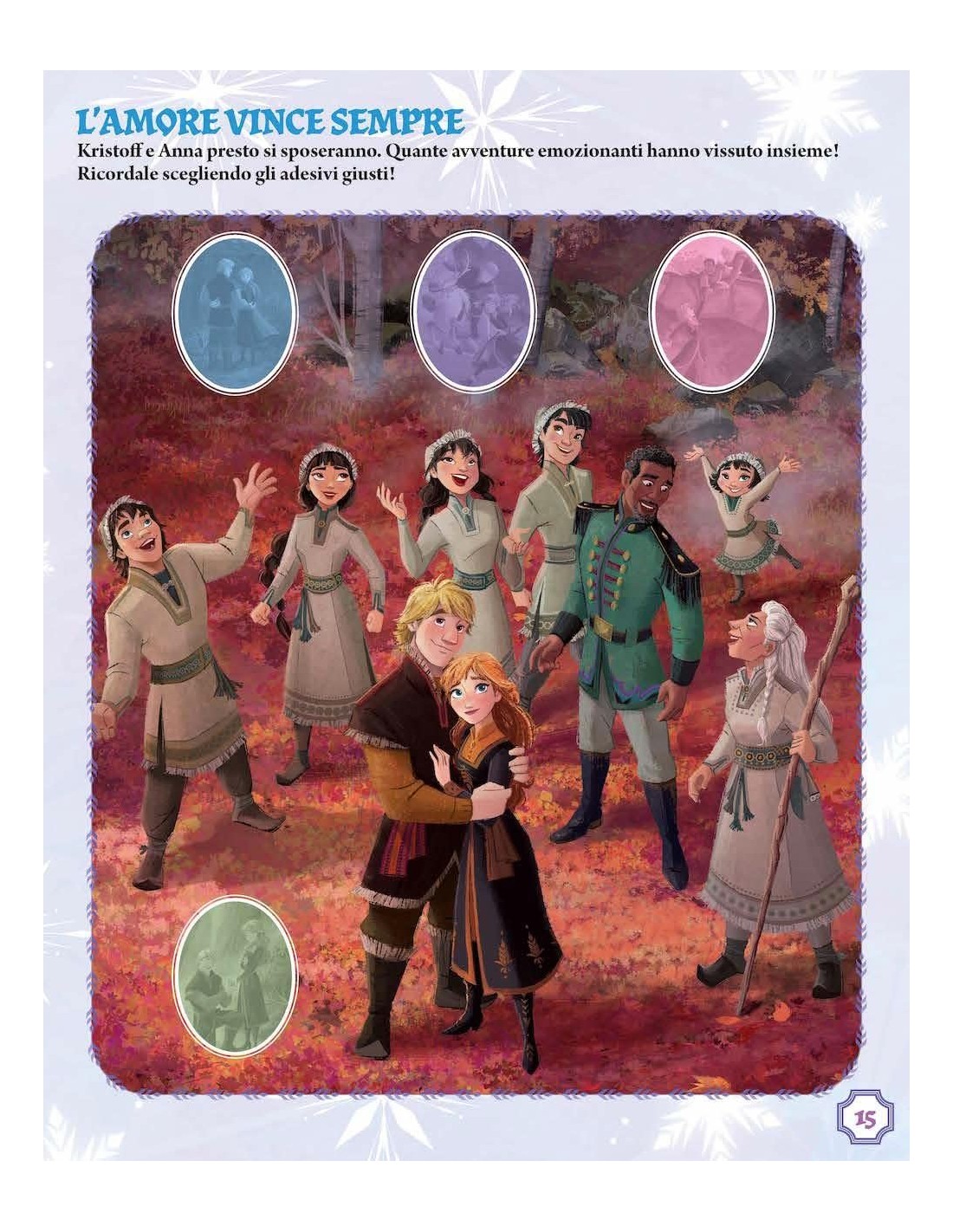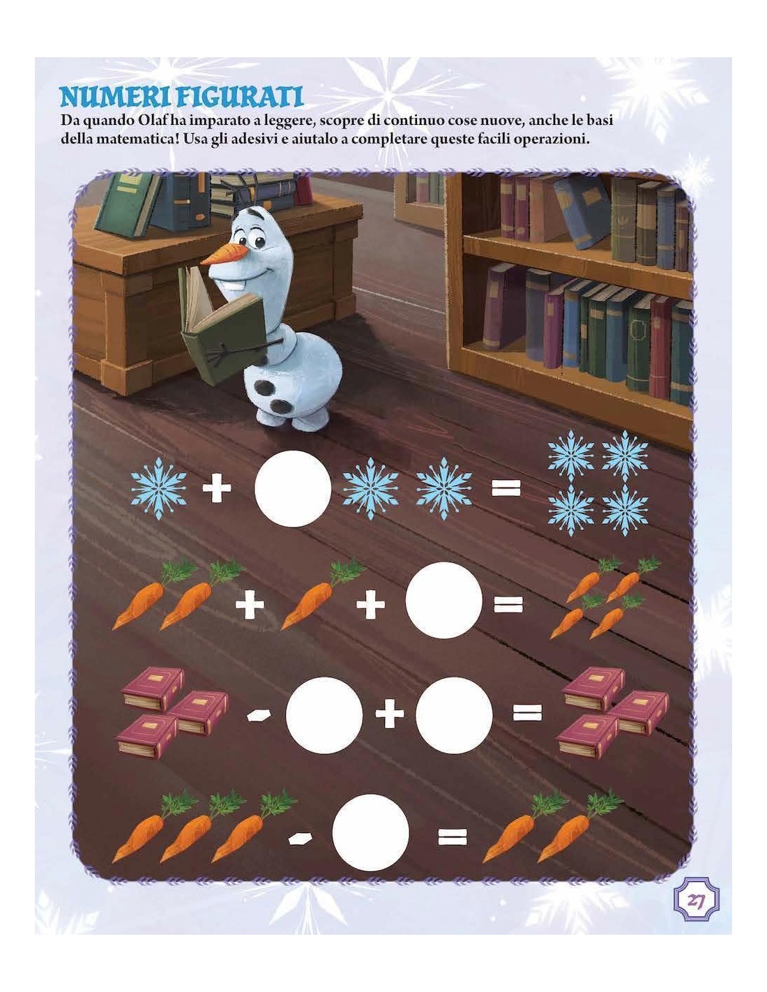 Anna, Elsa, Kristoff, la renna Sven e il buffo pupazzo di neve Olaf sono i protagonisti dei giochi e delle attività proposte in questo volume. Un grande album a colori con giochi educativi e attività da realizzare e completare con gli adesivi riposizionabili presenti nel libro (più di 200). Età di lettura: da 5 anni.