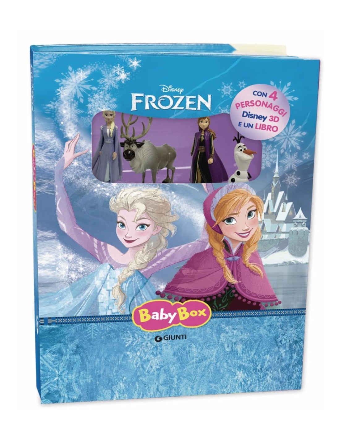 Il Baby Box è un libro stimolante, che accompagna le lettrici più piccole nel mondo di Frozen. La pratica e moderna scatola con chiusa a forma di libro contiene un libro di 12 pagine cartonate e 4 figurine 3d di plastica. Un libro, da leggere e da giocare, perfetto per incontrare e conoscere i personaggi più amati e scoprire i loro segreti. Il doppio utilizzo (lettura/gioco) favorisce il processo di identificazione e lo sviluppo delle attività manuali, e consente al bambino di riporre in ordine il libro e le figurine dopo l'uso. Età di lettura: da 3 anni.