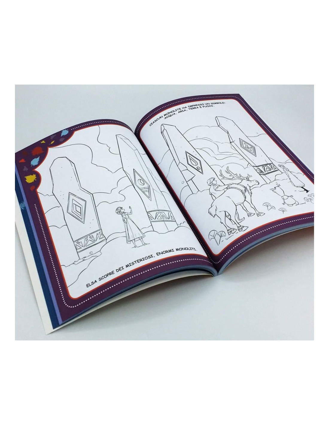 Un libro interattivo, compatto e maneggevole, ispirato al film di Frozen. Tanti bellissimi disegni da colorare, accompagnati da testi brevi e semplici. La grafica è essenziale e il blocco libro presenta esternamente un gioco di arcobaleni, grazie alle pagine realizzate con cornici di diversi colori. Età di lettura: da 3 anni.