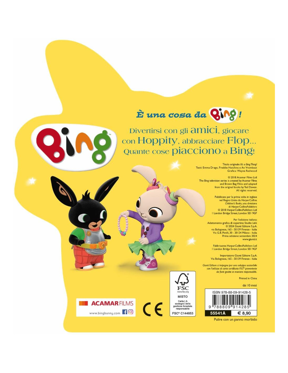 Un simpaticissimo libro sagomato per scoprire tutte le cose preferite di Bing. Dagli abbracci di Flop ai giochi con gli amici... che bello divertirsi con il nostro amico di sempre! Età di lettura: da 1 anno.