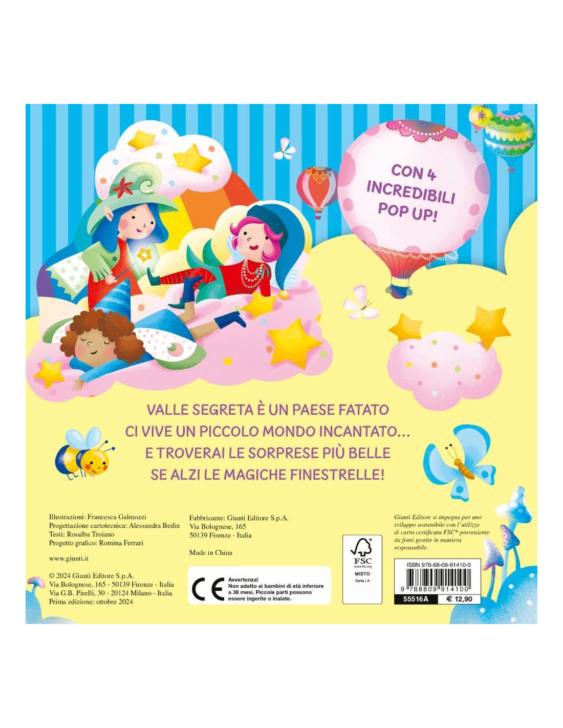Il mondo della fantasia in magici libri pop-up! Fate, unicorni, folletti e gnomi: a Valle Segreta regnano i colori, gli arcobaleni e la magia. Una storia divertente con immagini che saltano fuori dalle pagine e fanno scoprire, a ritmo di filastrocche, gli abitanti di questo mondo incantato. Un libro coloratissimo, con il quale leggere diventa un'esperienza di gioco e divertimento. Età di lettura: da 3 anni.