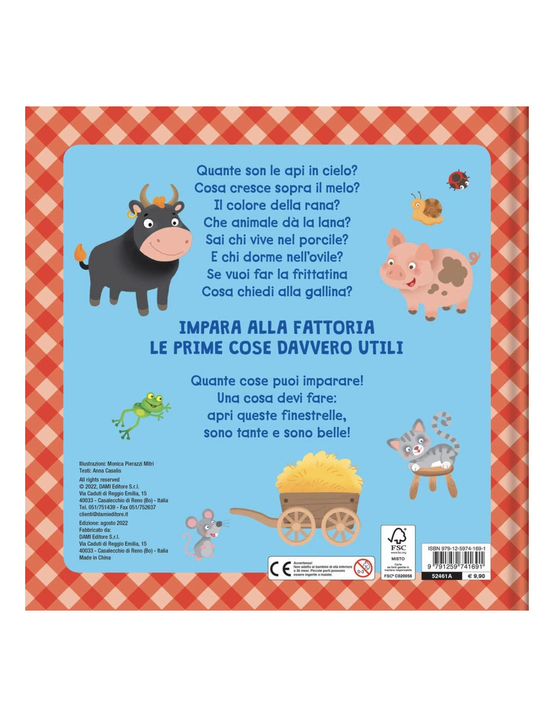 Quante son le api in cielo? Cosa cresce sopra il melo? Il colore della rana? Che animale dà la lana? Sai chi vive nel porcile? E chi dorme nell'ovile? Se vuoi far la frittatina cosa chiedi alla gallina? Quante cose puoi imparare! Una cosa devi fare: apri queste finestrelle, sono tante e sono belle! Impara alla fattoria le prime cose davvero utili! Età di lettura: da 3 anni.