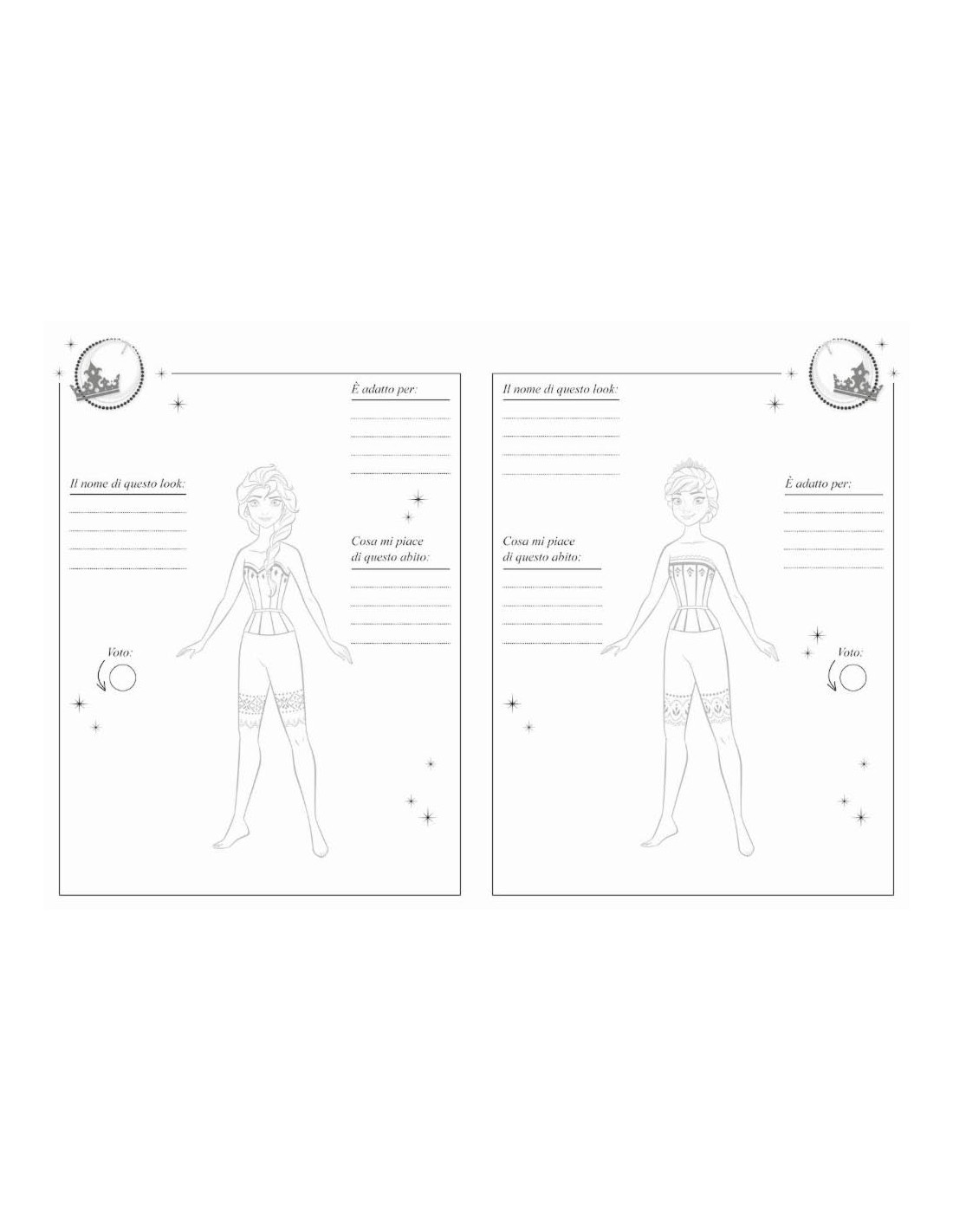 Un libro per divertirsi a creare capi da stilista e conoscere tutti i segreti di moda e accessori della regina Elsa, della principessa Anna e di Kristoff, mettendo a confronto il mondo incantato della loro infanzia con il loro look da adulti. Con l'aiuto di uno stencil e di tanti adesivi, le aspiranti stiliste potranno creare il loro stile, personalizzando, colorando e usando gli adesivi sui figurini di Elsa, Anna e Kristoff sia nella versione adulta che da bambino. Età di lettura: da 4 anni.