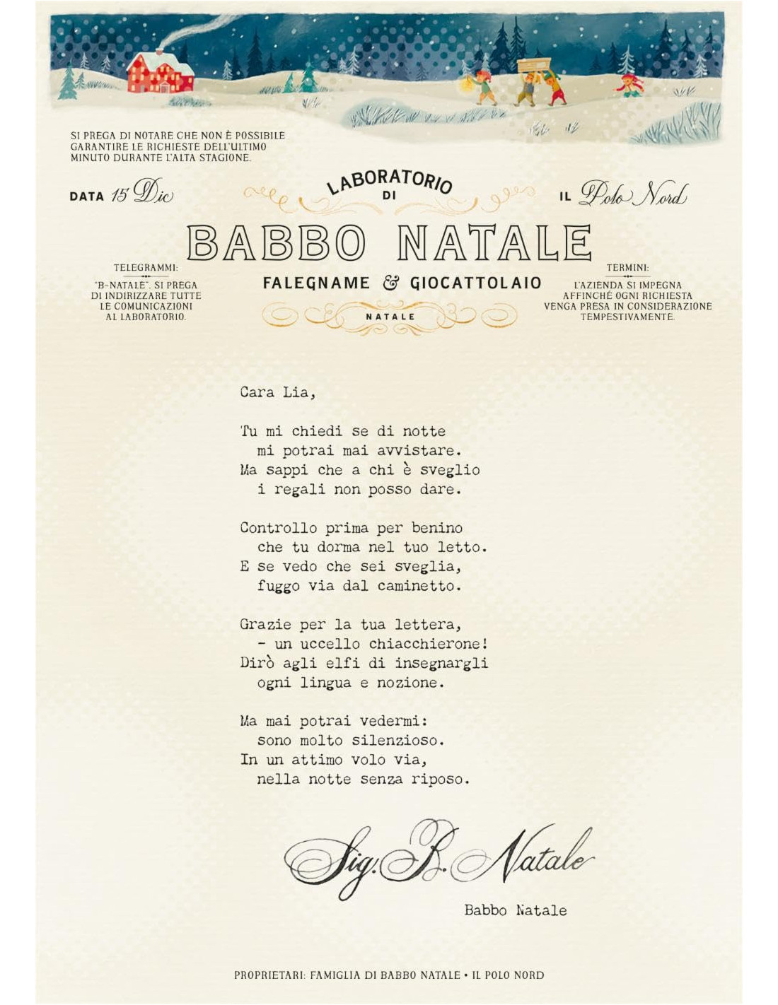 Scopri cosa succede quando cinque bambini da diverse parti del mondo decidono di scrivere a Babbo Natale... e ricevono una risposta! Attraverso le cinque lettere di Babbo Natale, vengono svelati i segreti del Polo Nord - come fanno le renne a volare tutta la notte di Natale? Quali sono le merendine preferite di Babbo Natale? E come fa a fare il giro del mondo così in fretta? Ma, soprattutto, riuscirà Babbo Natale a esaudire i desideri dei cinque bambini? Un albo dono da leggere ad alta voce, con una storia che scalda il cuore e cinque vere lettere di Babbo Natale da aprire e leggere. Età di lettura: da 4 anni.