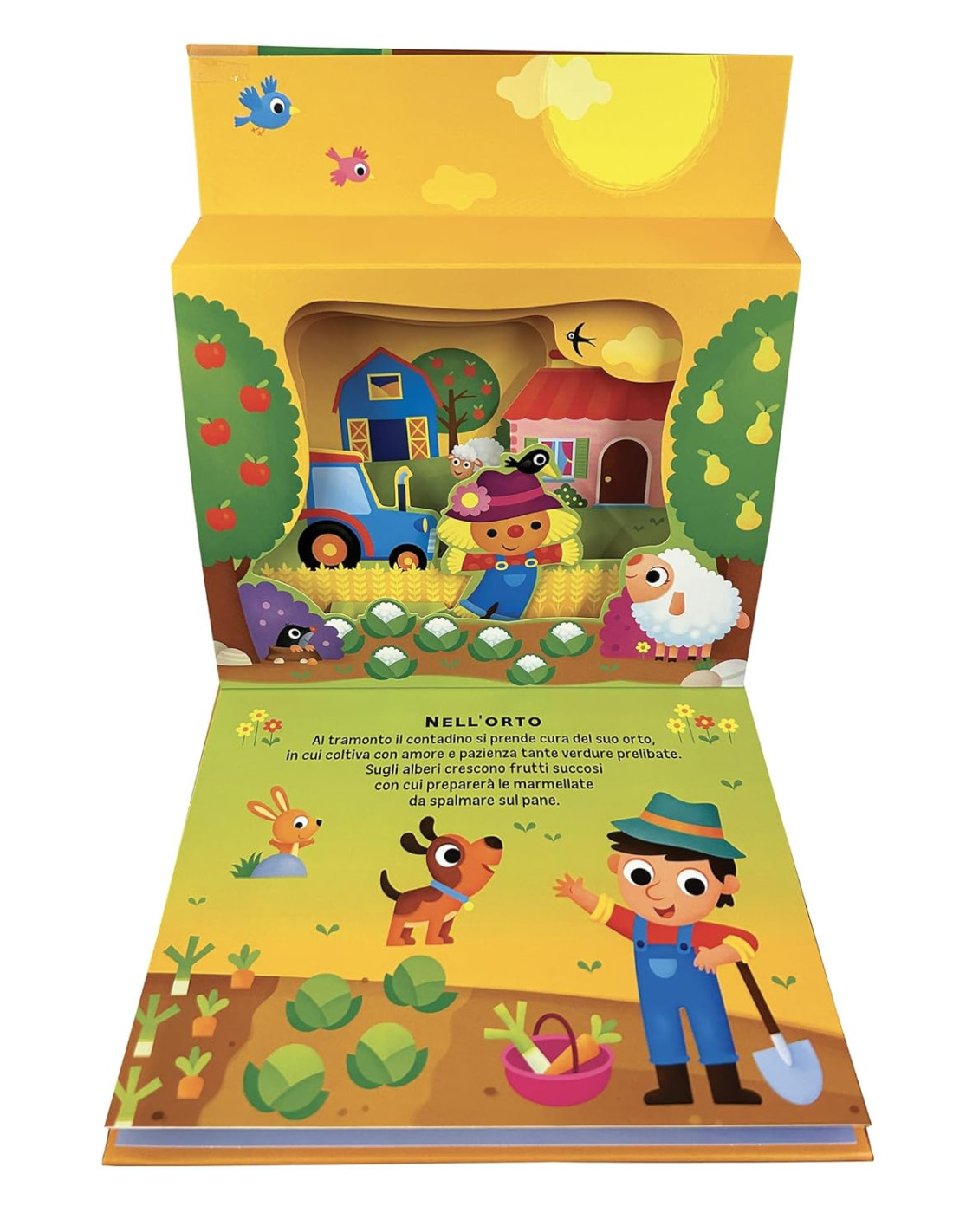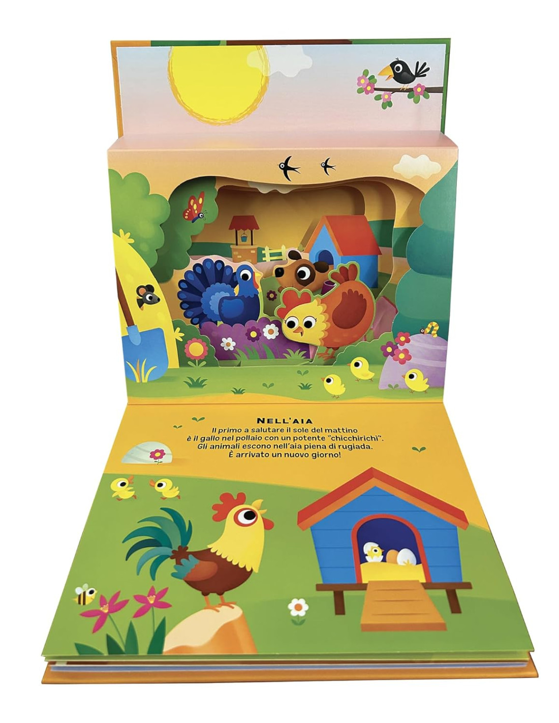 Uno speciale pop-up a tre livelli: ad ogni apertura, i piccoli lettori vedranno le coloratissime illustrazioni degli animali della fattoria animarsi con un effetto 3D spettacolare, attraverso un raffinato meccanismo che dona profondità alle immagini. Età di lettura: da 3 anni.