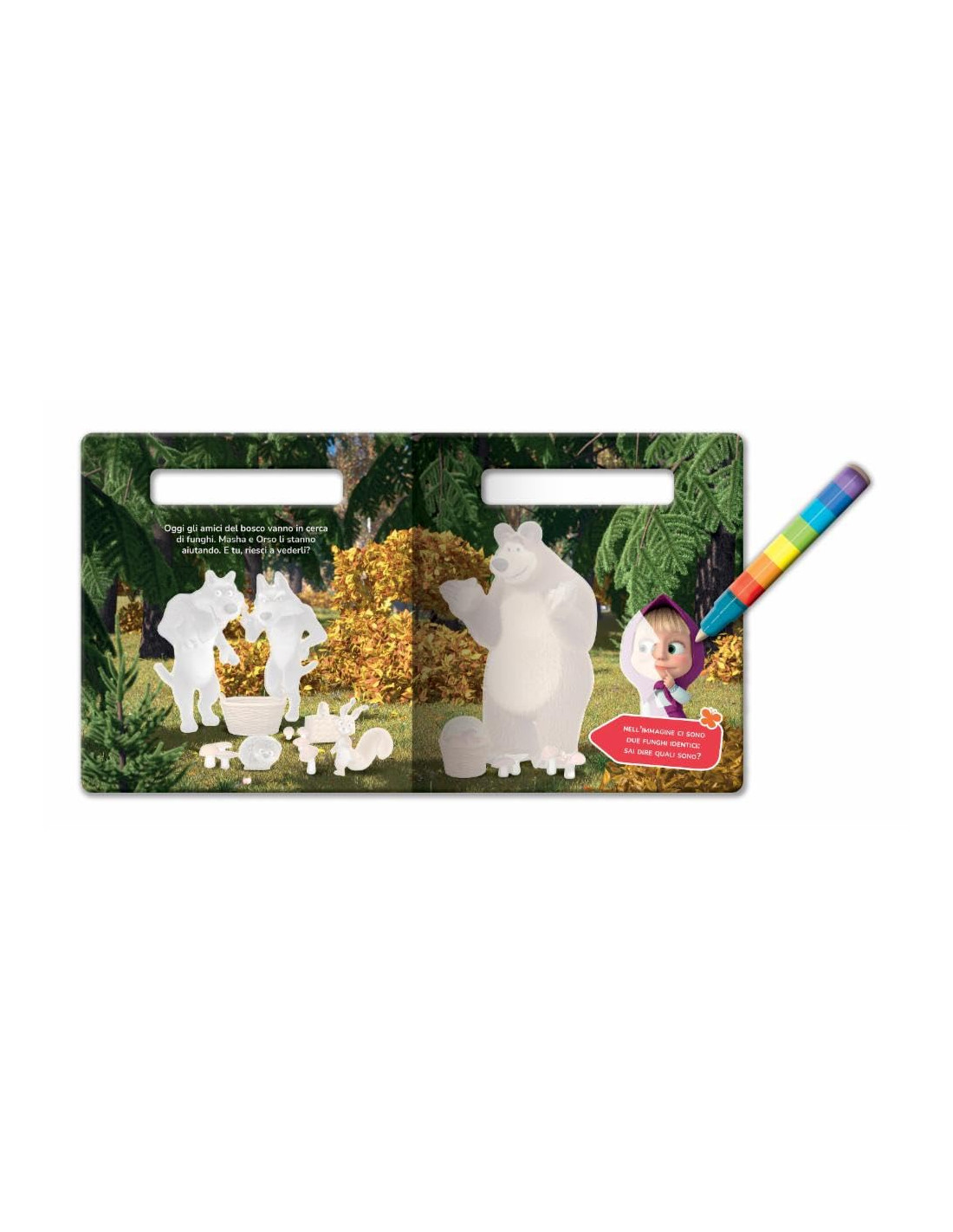 Che guaio starà combinando Masha? Basta riempire il pennarello d'acqua e passarlo sulle forme bianche per veder apparire la piccola peste e gli amici del bosco, come per magia. Quando scompaiono, si può ricominciare: un divertimento che non ha mai fine! Età di lettura: da 3 anni.