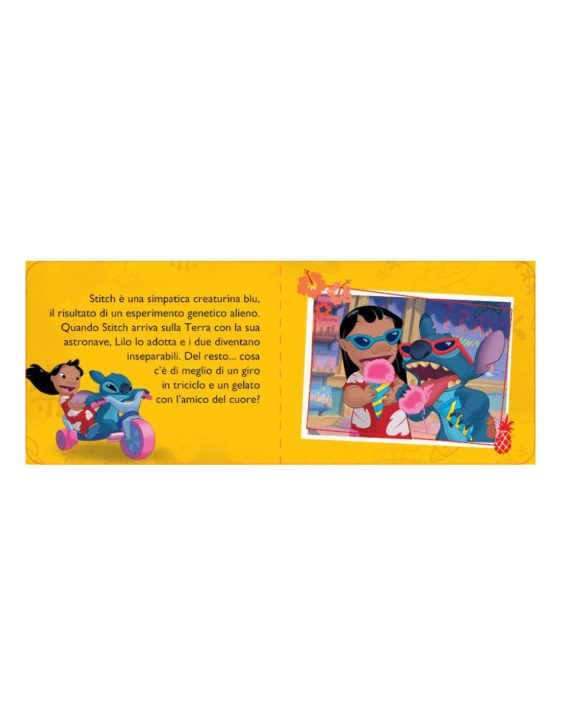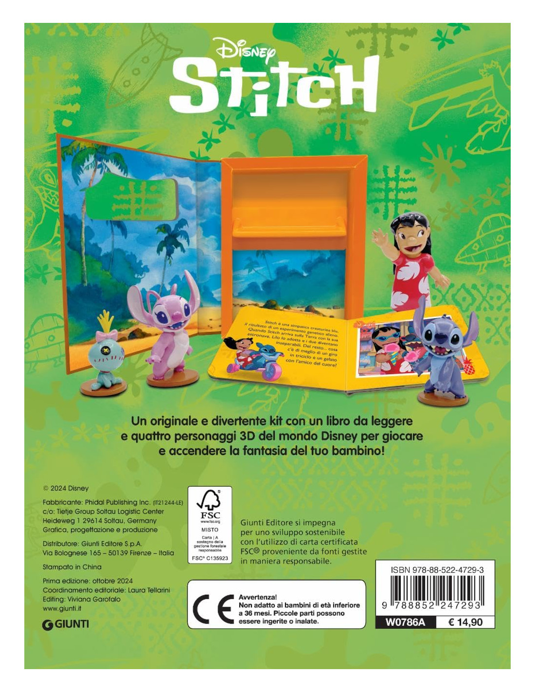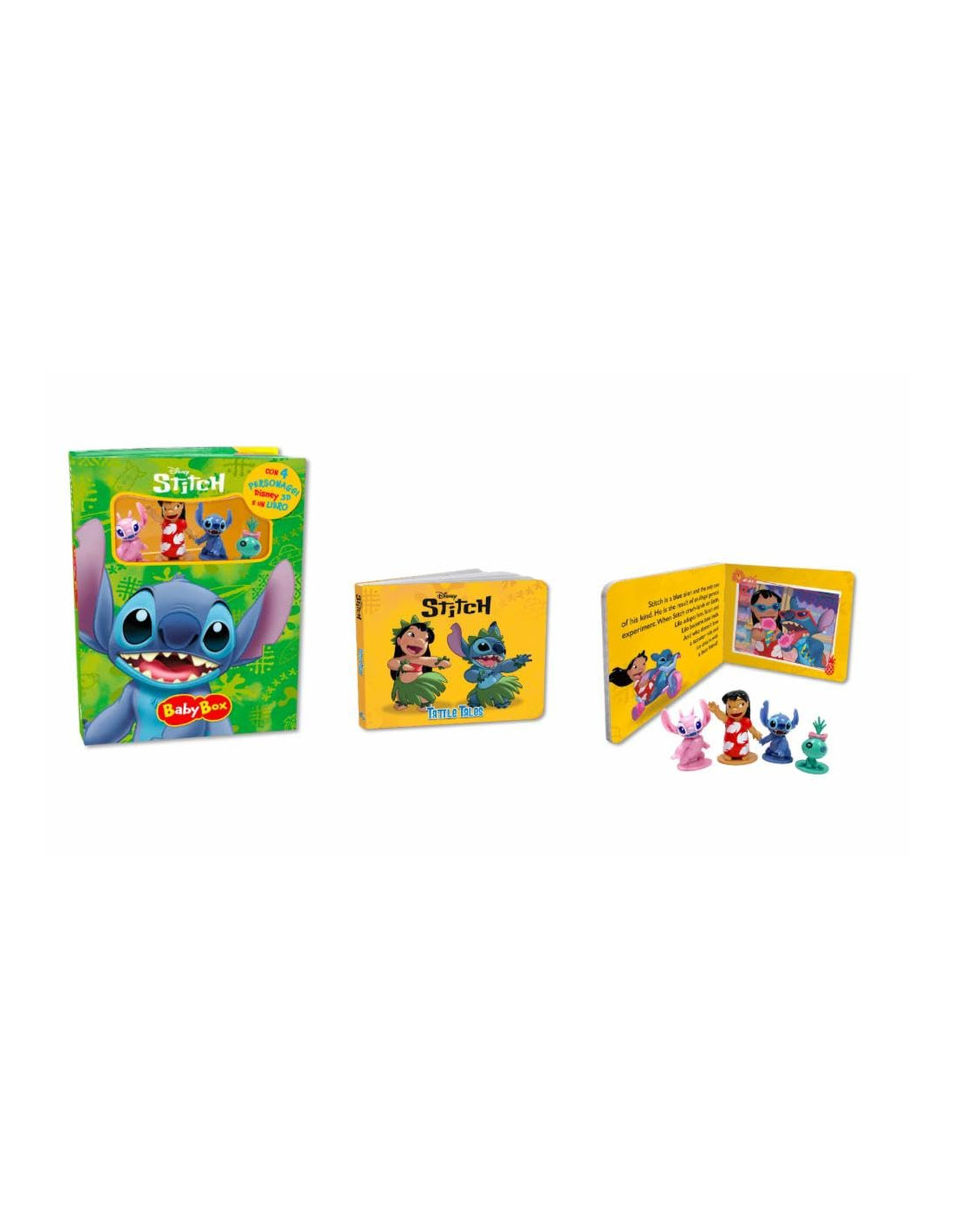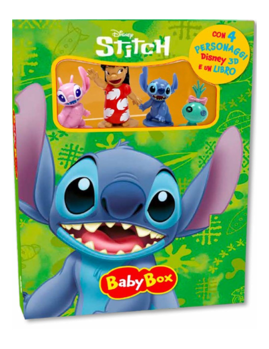 Il Baby Box è un libro stimolante che accompagna i lettori più piccoli alla scoperta del mondo di Stitch e delle sue avventure. La pratica scatola a forma di libro contiene un libro cartonato e 4 figurine 3d di plastica. Molto pratica, consente al bambino di riporre in ordine il libro e le figurine dopo l'uso. Il doppio utilizzo (lettura/gioco) favorisce il processo di identificazione e lo sviluppo delle attività manuali. Età di lettura: da 3 anni.