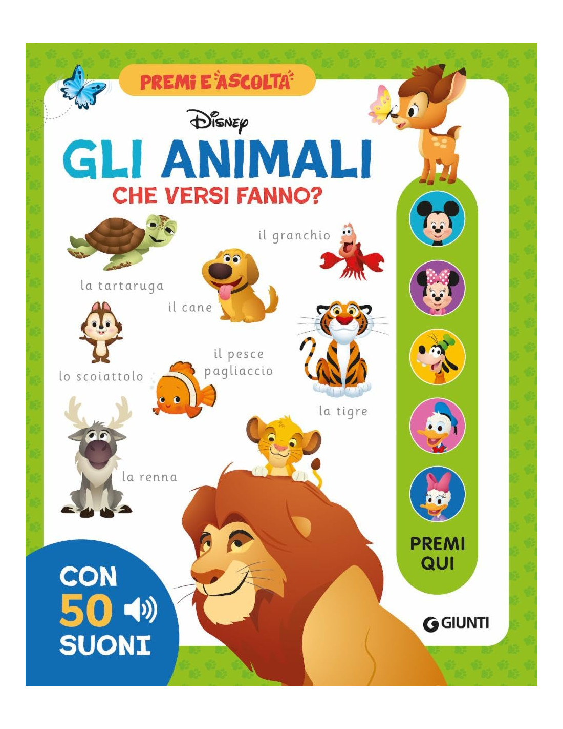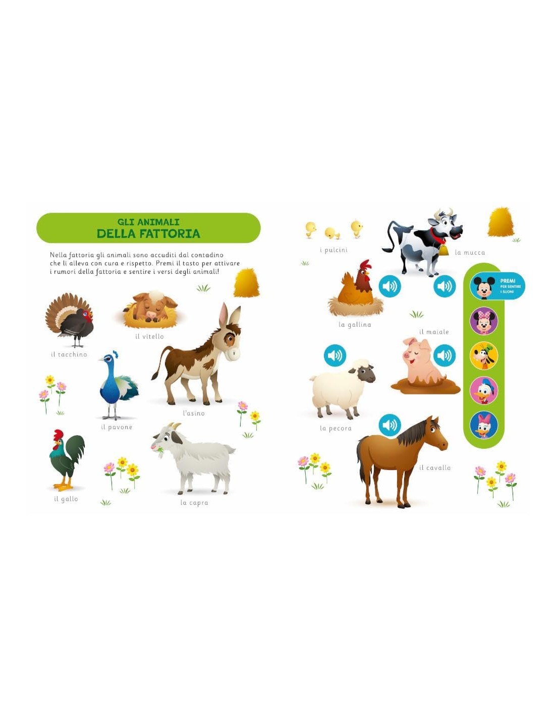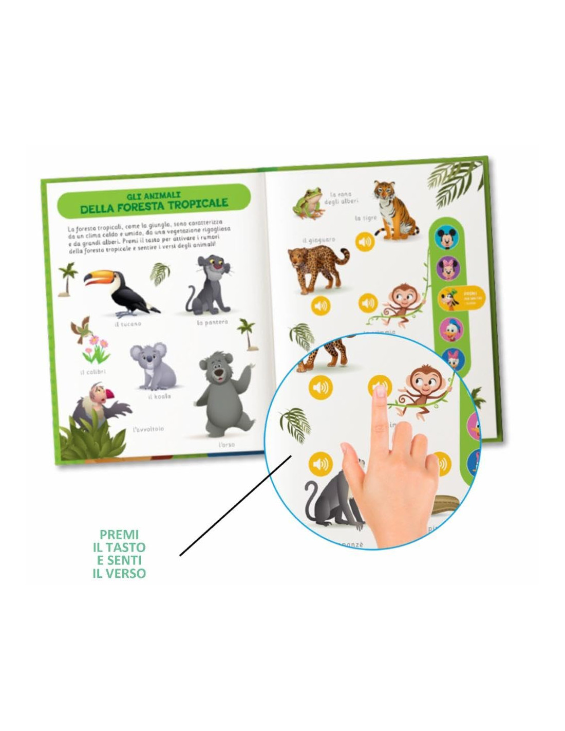 Un libro sonoro con modulo integrato che guida i piccoli lettori attraverso i versi di 50 animali, con più di 100 creature di tutti gli ambienti che prendono vita sulle pagine. Dai teneri cuccioli di casa ai potenti ruggiti della giungla, questo libro è un concentrato di suoni e colori! Un libro perfetto per i piccoli esploratori che vogliono conoscere meglio il mondo che li circonda insieme alle illustrazioni degli animali del mondo Disney. In ogni pagina sono presenti le icone che invitano il bambino a premere il tasto per sentire il verso dell'animale. Un volume che offre contemporaneamente più funzioni per lo sviluppo delle attività cognitive e manuali. Età di lettura: da 3 anni.