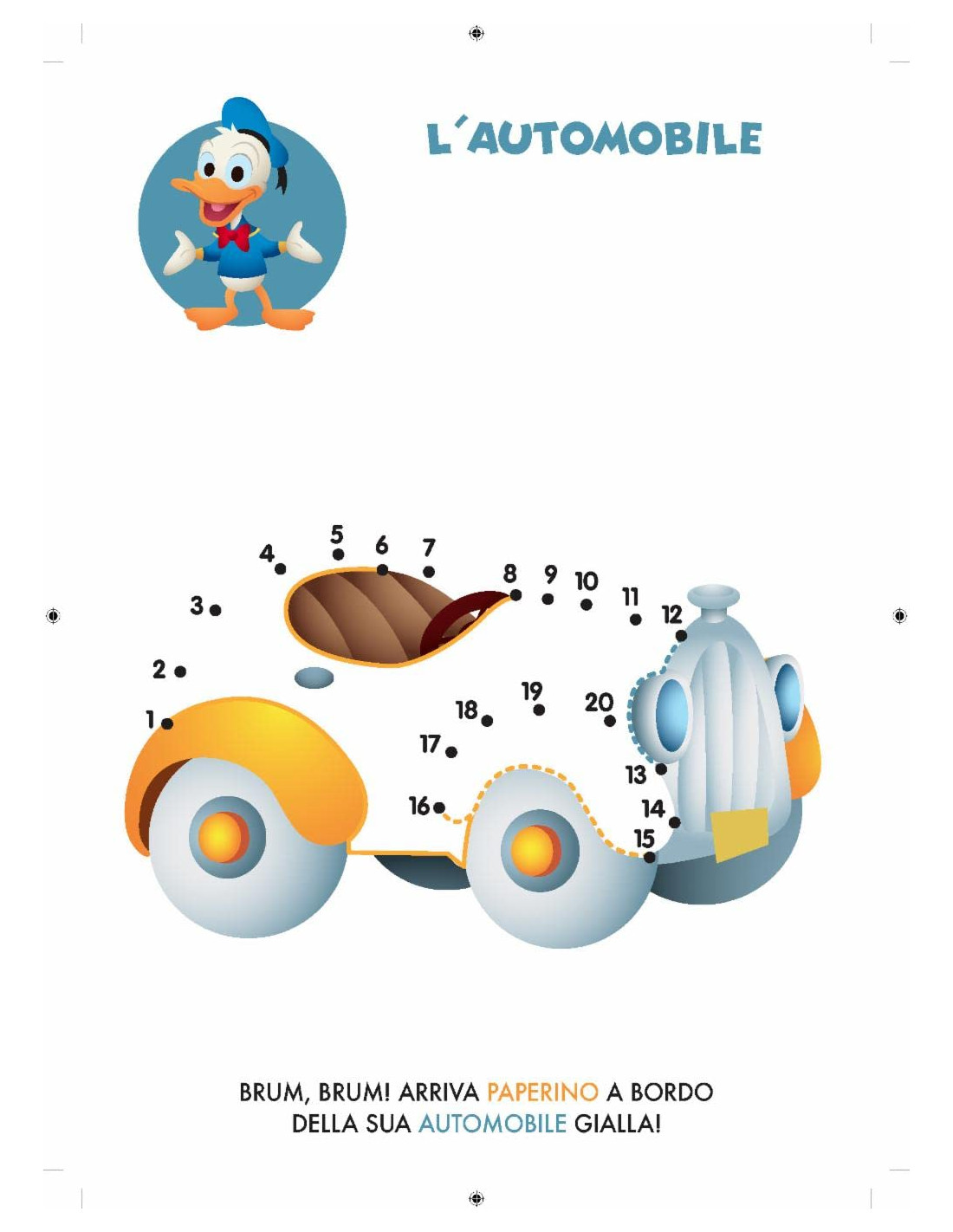 Un libro dedicato al mondo dei veicoli, con tanti disegni da creare unendo i puntini, per imparare i numeri e divertirsi a colorare! Le serie numeriche vanno dall'1 al 20 e i bambini, unendo i puntini in modo progressivo, impareranno i numeri in modo veloce, istintivo e allegro, scoprendo tanti disegni nascosti. Un album per stimolare la crescita intellettiva di ogni bambino, permettendo di sviluppare capacità logiche, grafiche e doti visivo-spaziali. Sono inoltre presenti brevi testi che invitano i bambini alla scoperta del mondo che li circonda. Età di lettura: da 3 anni.