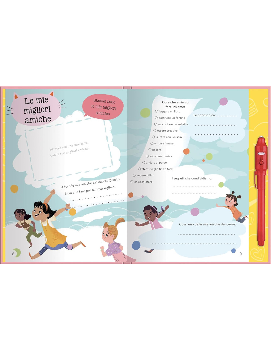 Un diario segreto con tante attività divertenti, domande personali a cui rispondere, test e molto altro per custodire i tuoi segreti al riparo da occhi indiscreti. Utilizzando infatti la penna a inchiostro invisibile in dotazione, le scritte sul diario saranno leggibili solo se illuminate dalla torcia UV presente sul cappuccio. Senza di essa, le pagine del diario appariranno vuote! Divertimento top-secret assicurato! Età di lettura: da 8 anni.
