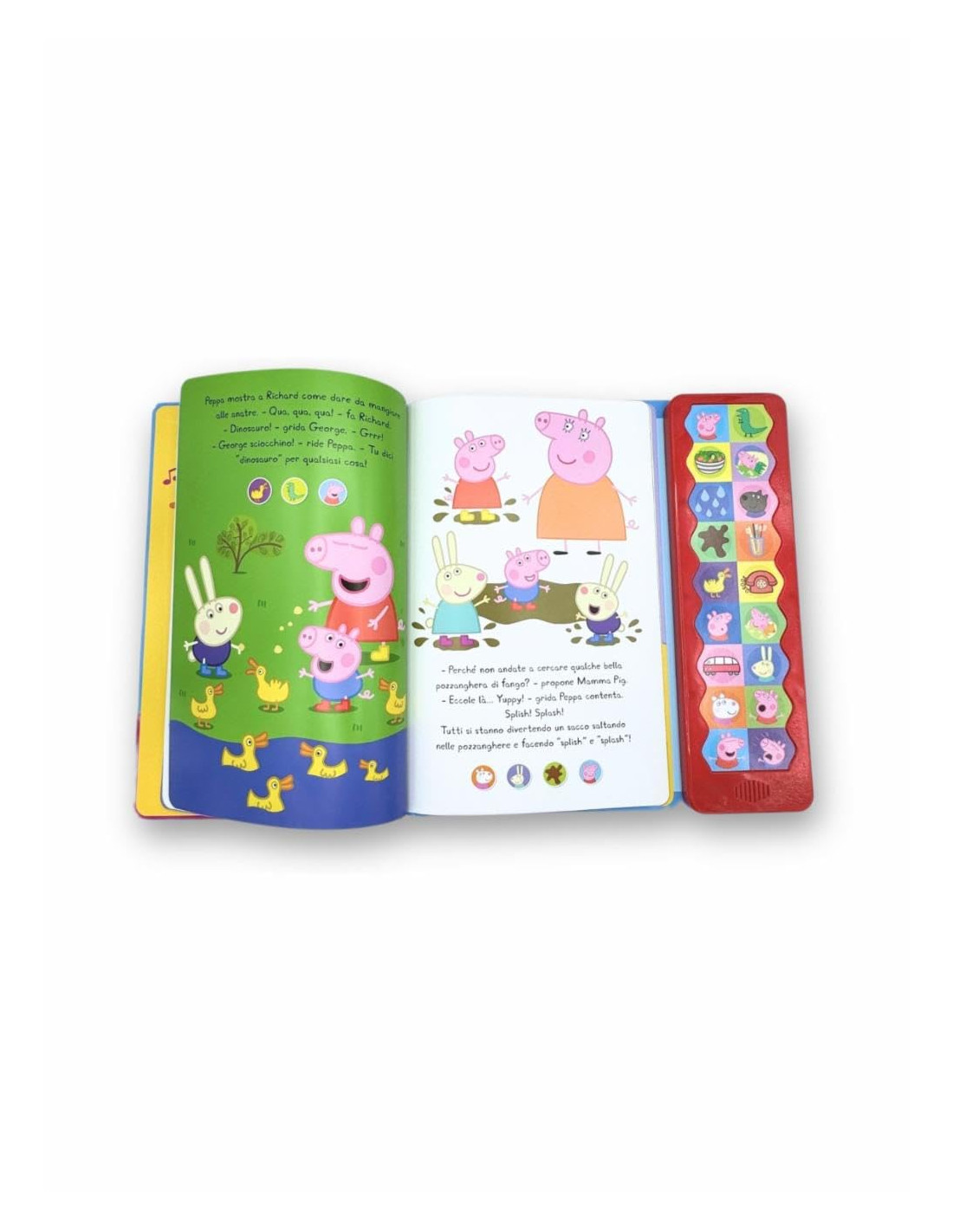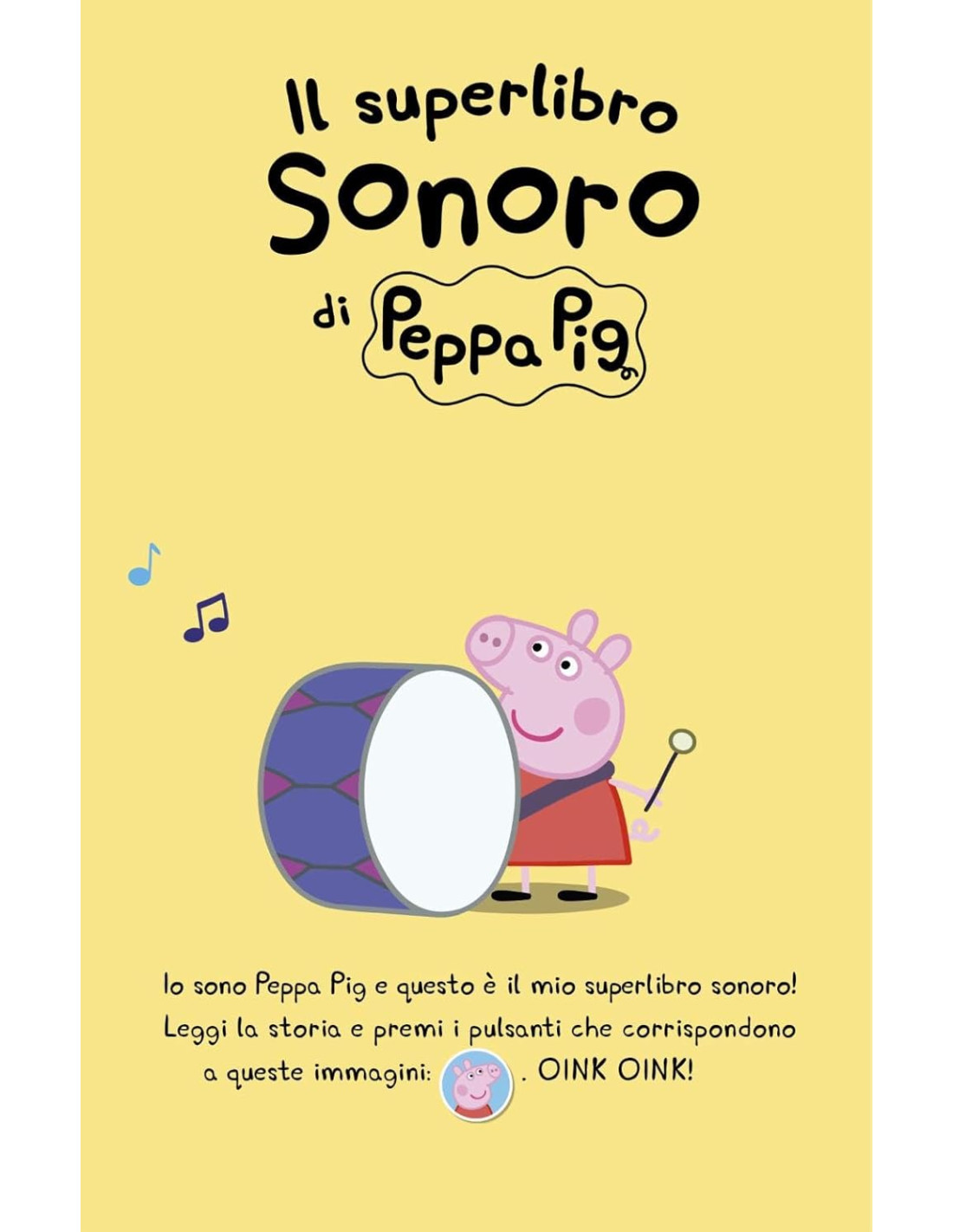 Un libro sonoro di grandi dimensioni con una divertentissima storia di Peppa e George, corredata di 18 pulsanti sonori per animare l'avventura! Età di lettura: da 3 anni.