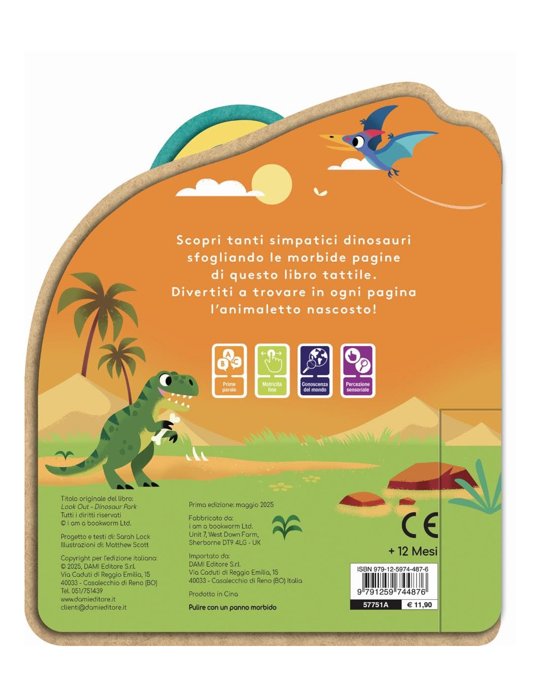Un morbido libro tattile da esplorare con gli occhi e con le mani. Le pagine sagomate in feltro ospitano coloratissime illustrazioni che catturano l'attenzione dei piccoli: ad ogni apertura compaiono tanti dinosauri accompagnati dai loro nomi e un invito a cercare nella pagina un particolare dettaglio. Da leggere e guardare insieme per stimolare le abilità percettive e la capacità di osservazione.