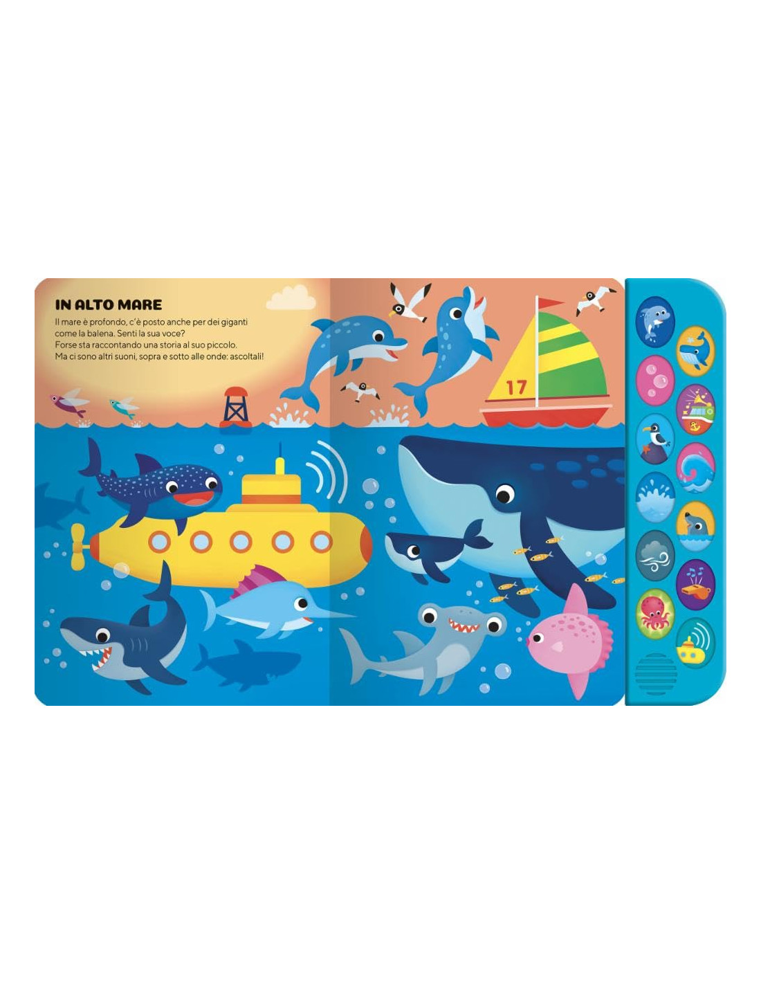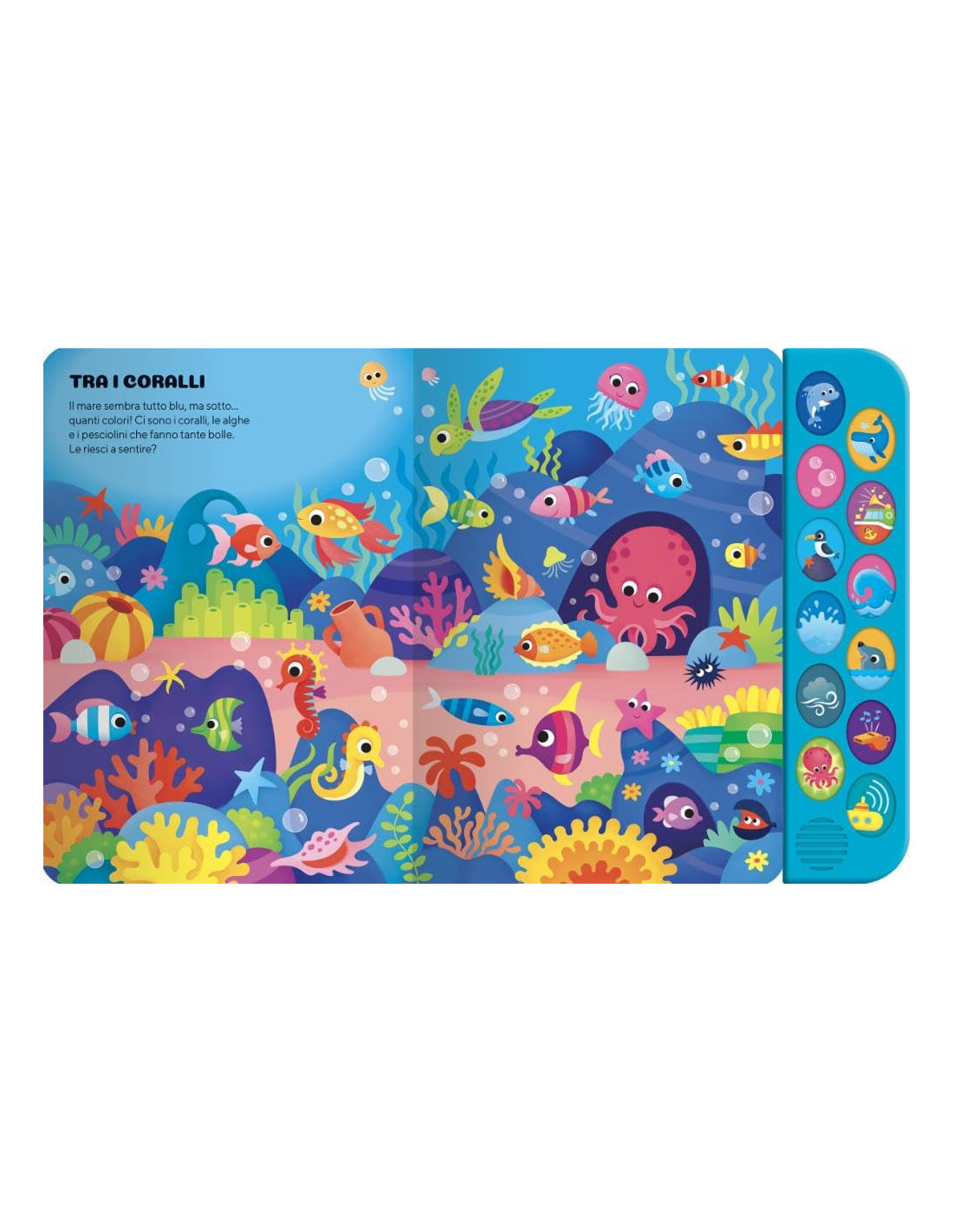 Un libro sul mare e le creature che lo popolano, in cui i bambini sono invitati a cercare gli elementi raffigurati all'interno delle illustrazioni e a premere i pulsanti corrispondenti per scoprire i dodici suoni presenti. Un libro interattivo e multisensoriale, con testi semplici perfetti per imparare parole nuove e bellissime illustrazioni per sorprendersi pagina dopo pagina. Età di lettura: da 3 anni.