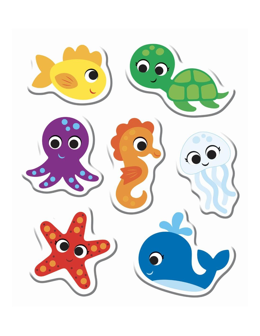 Un libro da bagno con 7 sagomine degli animali del mare da attaccare alle pareti della vasca o della doccia: tutto ciò che serve per rendere il momento del bagnetto divertente e stimolante! Tanti personaggi di diverse forme con cui giocare, tutti realizzati in schiuma fine e rivestiti di carta plastificata che, una volta bagnati, si attaccano a vetri e piastrelle. Età di lettura: da 6 mesi.