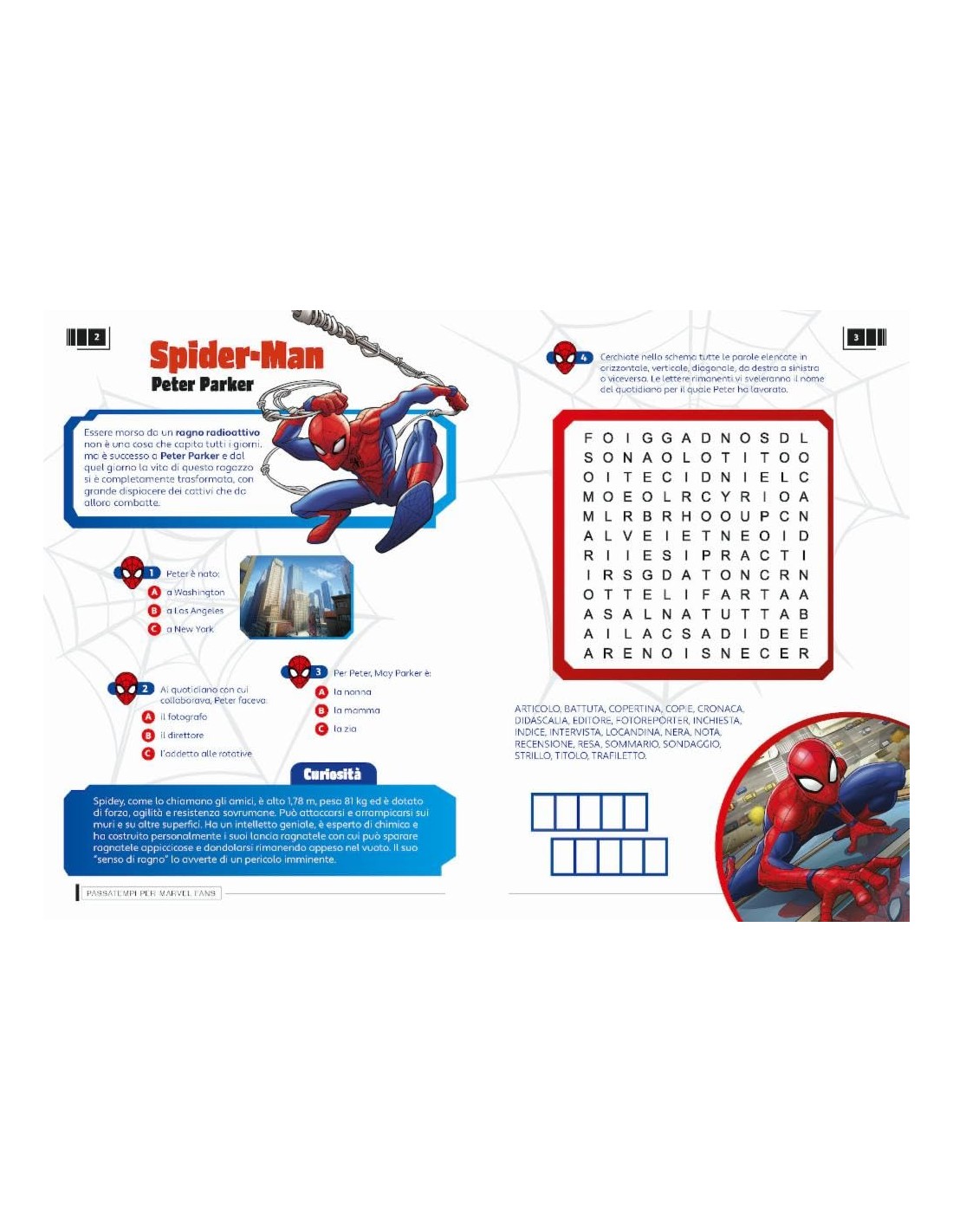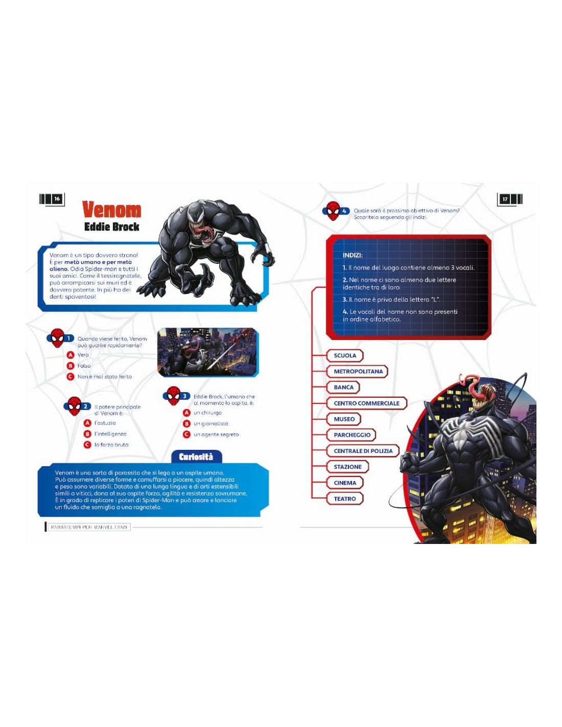 In questo libro tanti quiz per mettere alla prova la propria “competenza” sull'universo Marvel e per scoprire curiosità e segreti sugli eroi più famosi e amati di sempre. Tanti giochi enigmistici, labirinti, pagine da colorare per rilassarsi e facili esercizi su come diventare un vero supereroe. Un volume per il relax di tutte le età! Età di lettura: da 5 anni.