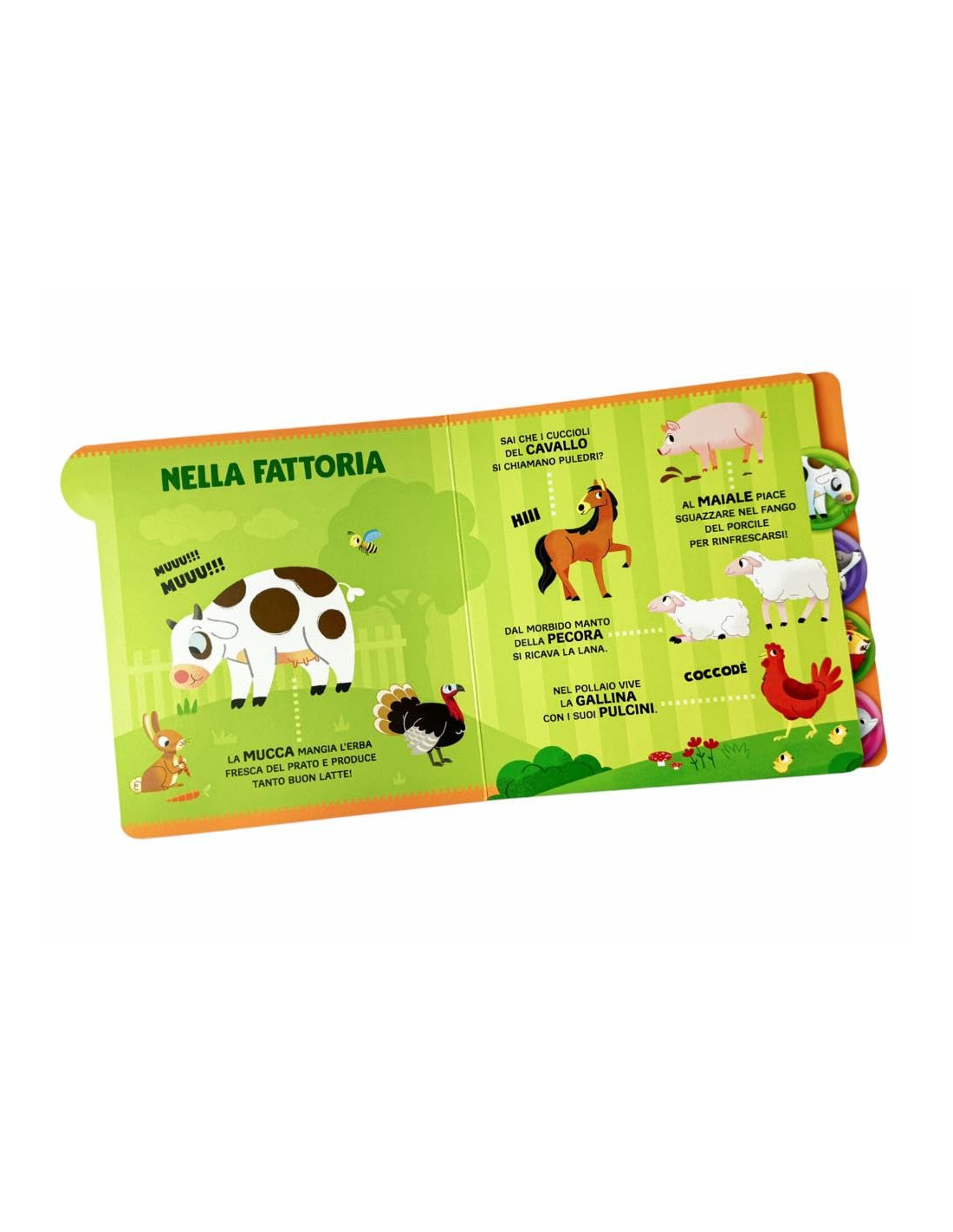 Premi i pulsanti, ascolta e scopri il mondo e i suoi rumori! Gli animali di casa, della fattoria, del bosco, della savana e del mare in un libro con pagine rubricate e 5 pulsanti sonori. I bambini si divertiranno un mondo a premere i pulsanti e ad ascoltare i loro amici animali nei loro diversi ambienti. Età di lettura: da 3 anni.