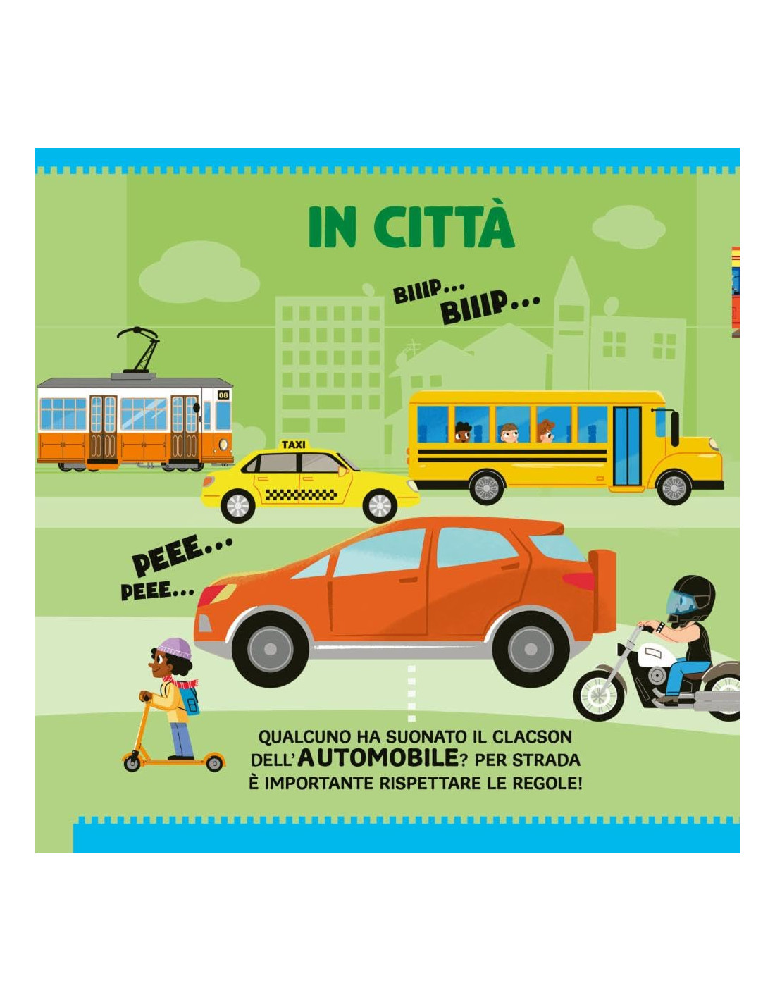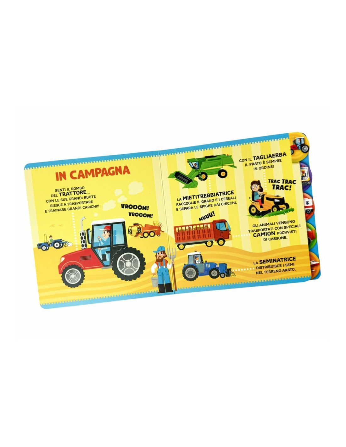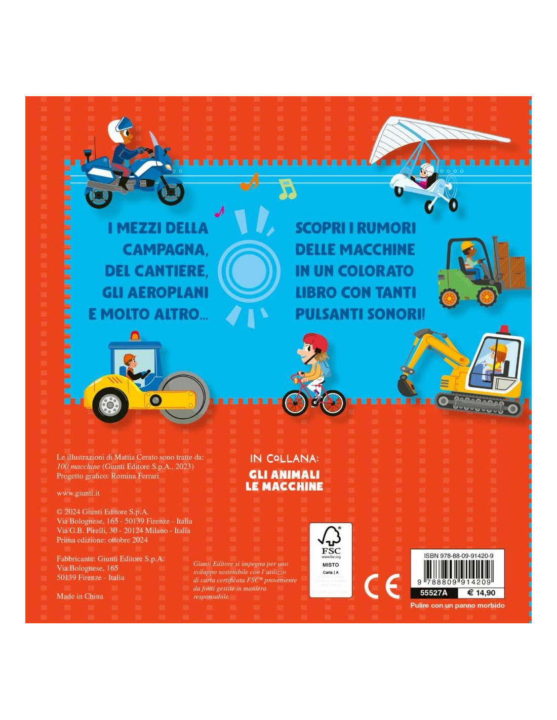 Premi i pulsanti, ascolta e scopri il mondo e i suoi rumori! Quante macchine si muovono nel mondo: in città, in campagna, nel cantiere, in cielo e nelle situazioni di emergenza. I bambini si divertiranno un mondo a premere i pulsanti di queste pagine rubricate per ascoltare i suoni e i rumori dei loro mezzi preferiti. Età di lettura: da 3 anni.