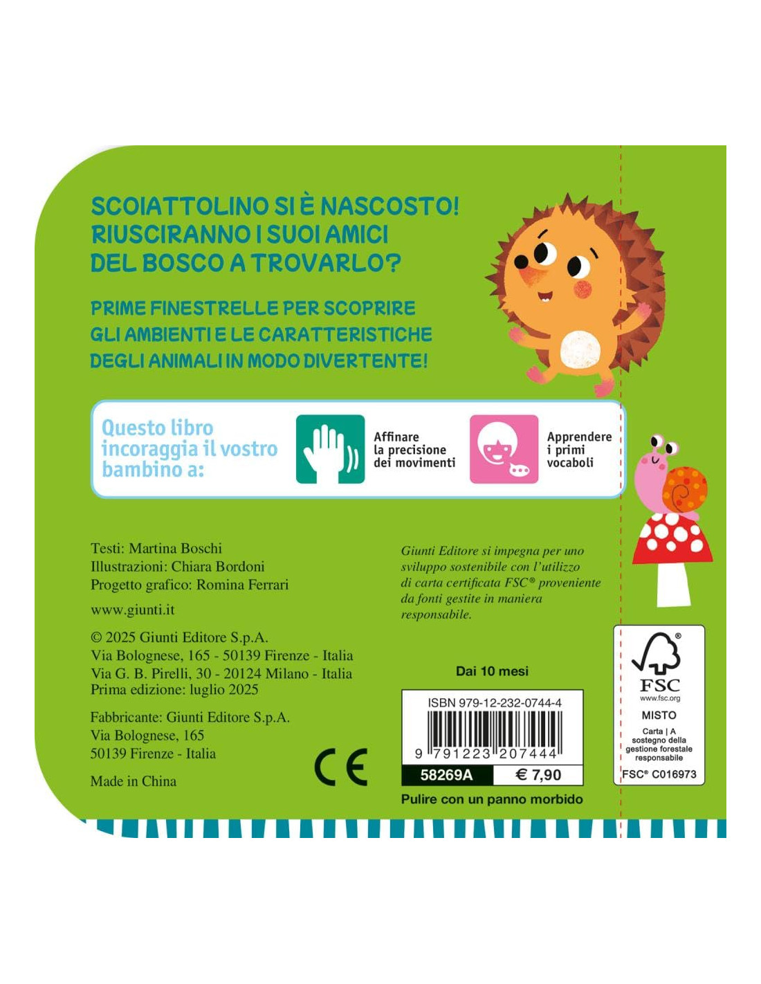 Una nuova collana di primissime finestrelle con formato piccolo e maneggevole adatto ai più piccoli. Le finestrelle grandi e sagomate hanno un canale che permette la facilità nell'apertura. Ogni titolo è caratterizzato da brevi testi in rima ed è dedicato a un ambiente naturale. Gli animali di ciascun habitat si metteranno alla ricerca del protagonista del libro: solo alla fine, tutti insieme, non solo scopriranno il suo nascondiglio ma daranno modo al bambino di conoscere meglio la natura attraverso piccole curiosità. Età di lettura: da 3 anni.