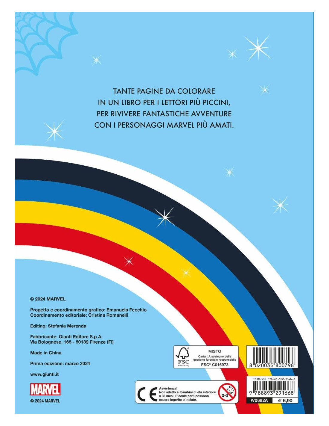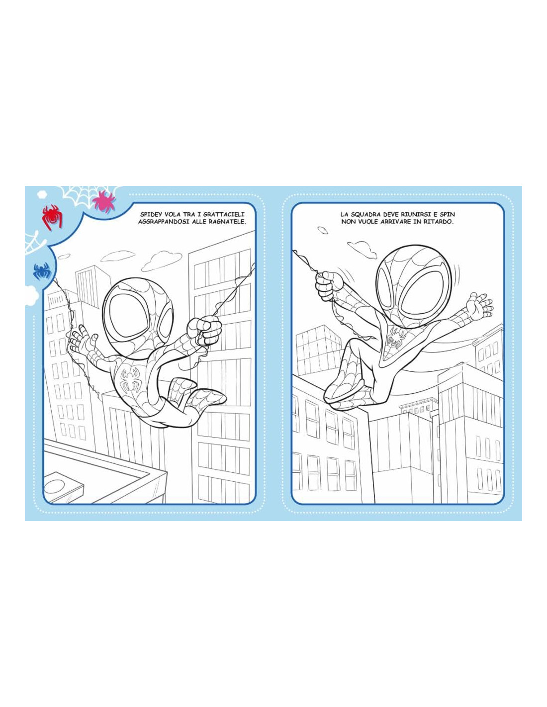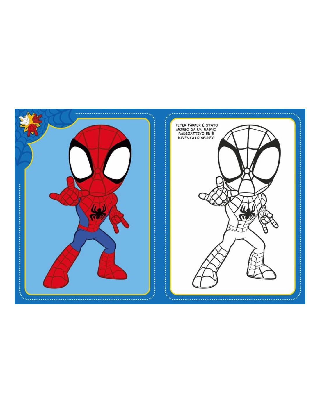 Volume dedicato agli eroi Marvel di Spidey e i suoi fantastici amici. Tanti bellissimi disegni da colorare, accompagnati da testi brevi e semplici, in stampatello maiuscolo. Età di lettura: da 3 anni.