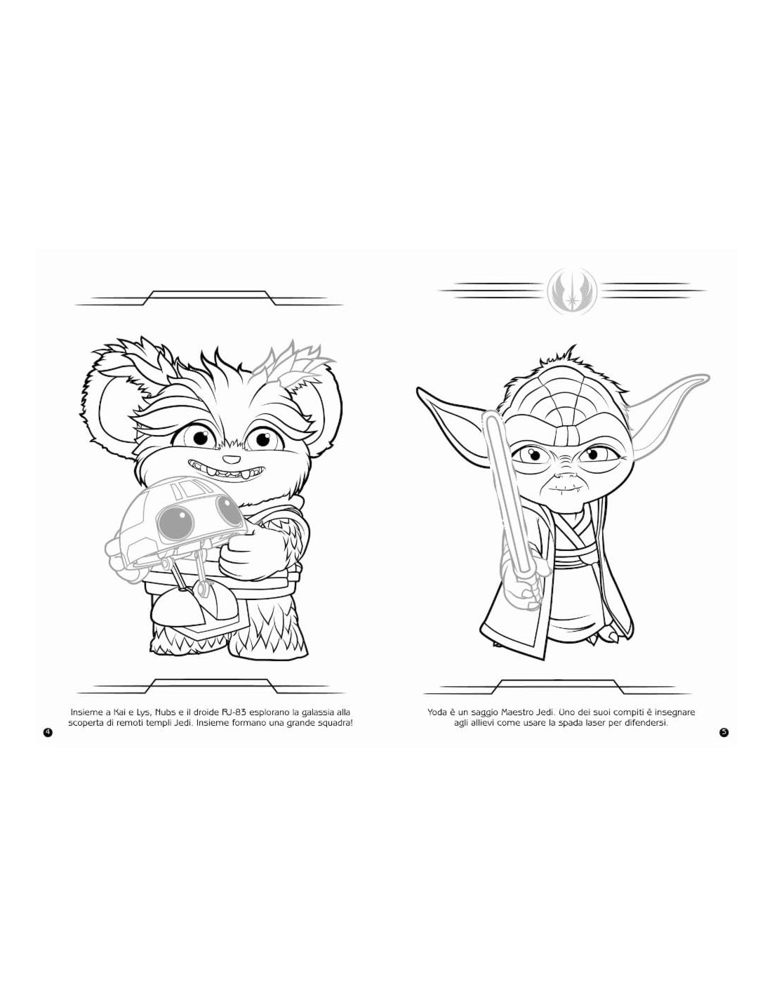 Un albo attivo con le avventure di quattro giovani in addestramento per diventare Cavalieri Jedi, con storie da colorare e completare con gli adesivi, e tanti adesivi premio tutti colorati e riposizionabili. I testi sono elementari e la grafica essenziale. Un libro studiato per giovani lettori, che offre più funzioni per lo sviluppo delle attività manuali e la scoperta del mondo. Età di lettura: da 3 anni.