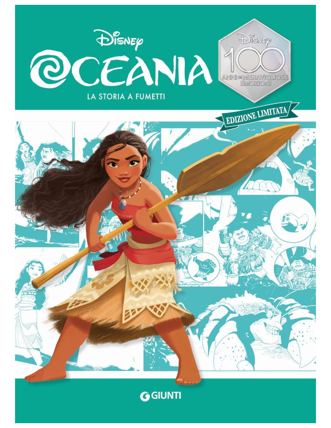 Il volume Oceania della nuova collana La storia a fumetti - Edizione limitata celebra 100 anni di Disney. La storia del noto film d'animazione Disney è raccontata nella versione a fumetti in questo libro di 64 pagine. le parole si miscelano a vignette con tagli e inquadrature particolari e con colori brillanti. Dopo la storia a fumetti, il volume è completato da pagine di approfondimento sui personaggi protagonisti. Un volume da collezione a tiratura limitata - disponibile solo per il 2023. Età di lettura: da 6 anni.