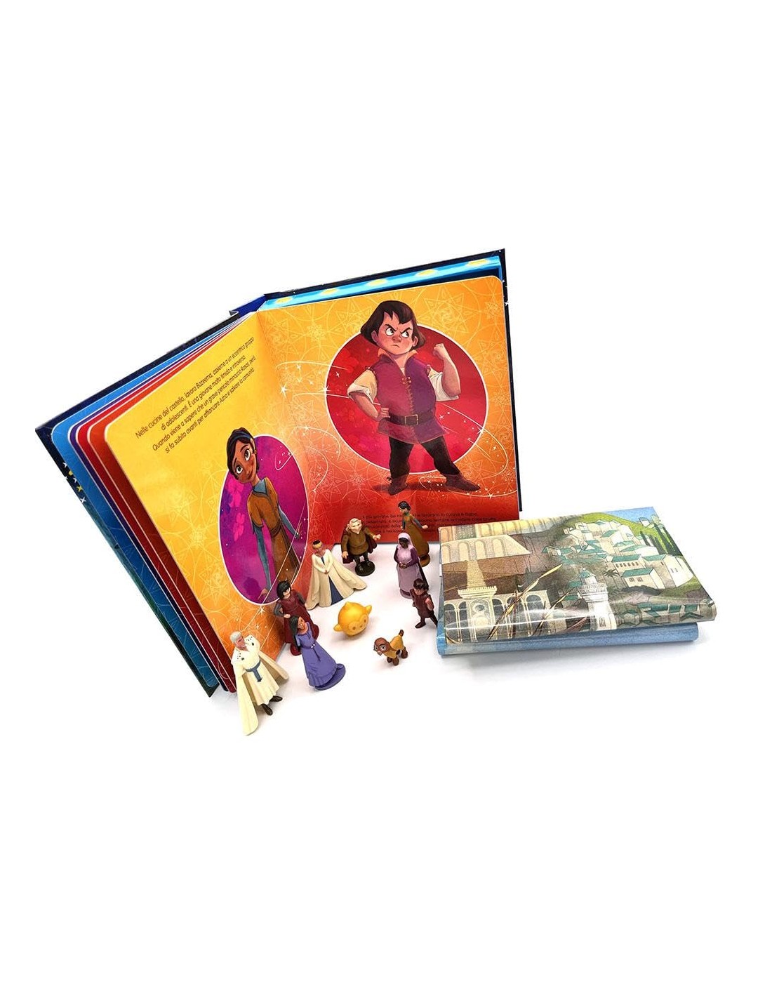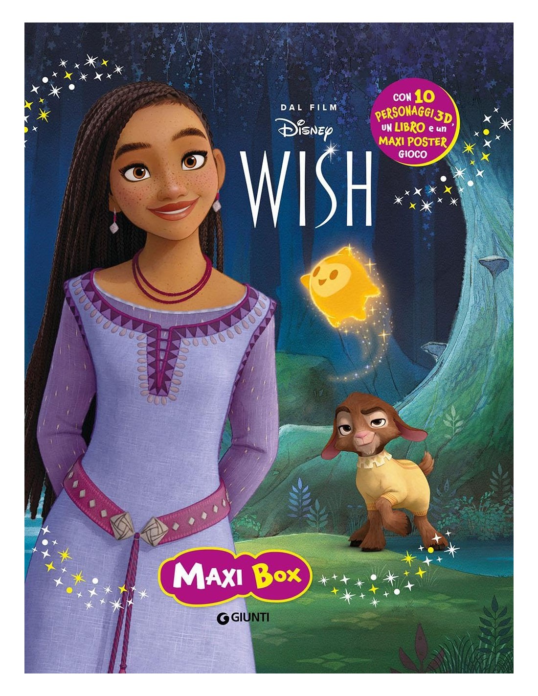 La Maxi Box è un libro gioco stimolante, che invita i giovani lettori a immedesimarsi nelle avventure di Asha, la protagonista del film Wish, impegnata a salvare il Regno dei Desideri. Un libro cartonato da leggere, ma soprattutto da giocare, dal formato innovativo: una scatola libro con 10 figurine 3D e un tappetino gioco di plastica dalle grandi dimensioni (90 x 60 cm) con cui riprodurre la storia del film, o inventarne di nuove. Il doppio utilizzo (lettura/gioco) favorisce il processo di identificazione e lo sviluppo delle attività manuali. Età di lettura: da 3 anni.