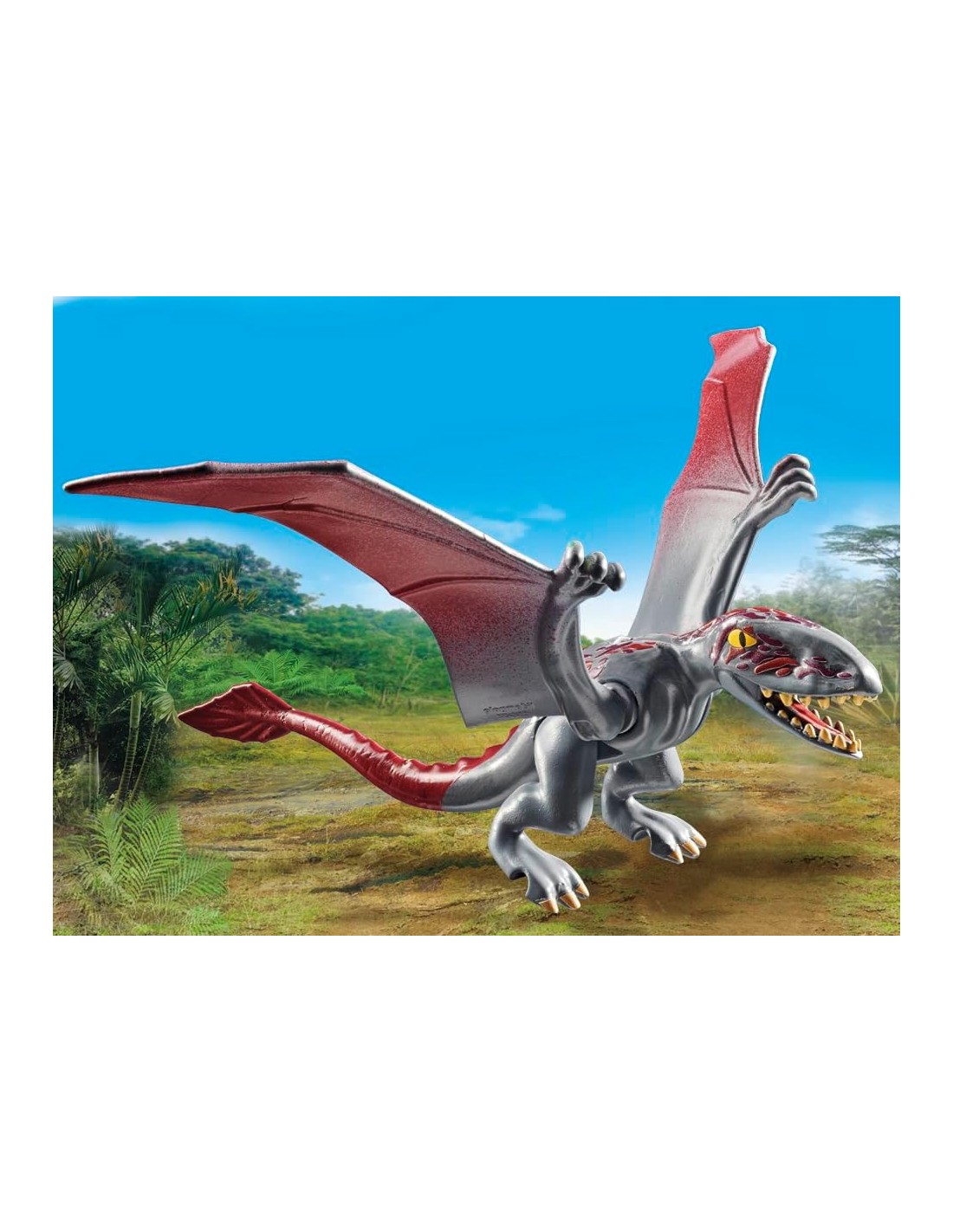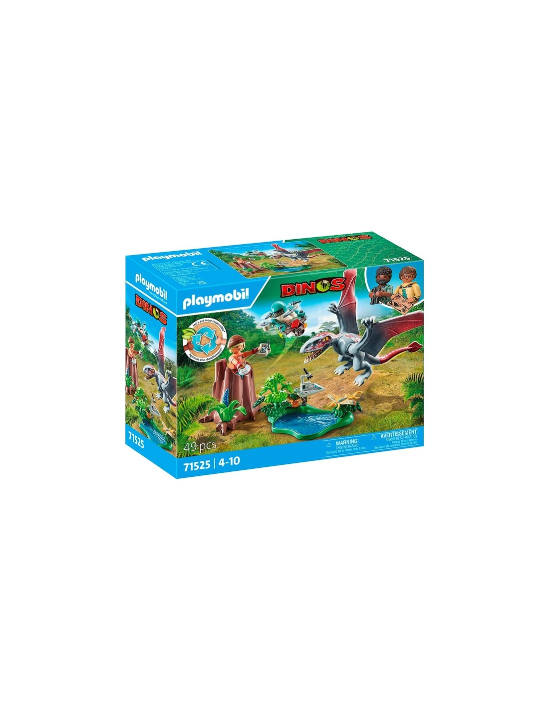 Contemporaneamente al Dimorphodon, il drone decolla dalla stazione di osservazione e lo segue. Nello stagno si esaminano campioni d'acqua e si osserva il comportamento alimentare del dinosauro. Include una scheda informativa sul dinosauro. Entra nel mondo dei dinosauri con il playset Alla ricerca del Dimorphodon di PLAYMOBIL. Nascosto nel suo tronco d'albero cavo, il ricercatore di dinosauri osserva il Dimorphodon mentre cerca cibo. Utilizzando il suo drone con fotocamera, cattura immagini ravvicinate senza disturbare il grande rettile volante. In seguito, conduce ulteriori ricerche con il microscopio. Una giornata di grandi esplorazione! Il Mondo dei Dinosauri di PLAYMOBIL invita i bambini dai 4 anni in su a tuffarsi in emozionanti avventure di gioco di ruolo e a rivivere il fascino di questi rettili giganti a casa propria.