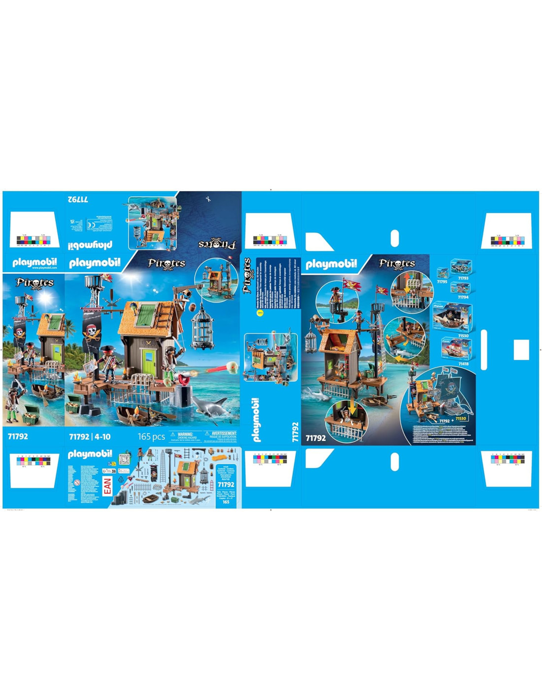 L'avventura dei pirati: l'approdo dei pirati di PLAYMOBIL non serve solo come attracco per le fiere navi pirata, ma anche come temuta prigione! Squali pericolosi o pirati rivali possono essere imprigionati nella grande vasca con gabbia sotto il corpo di guardia!