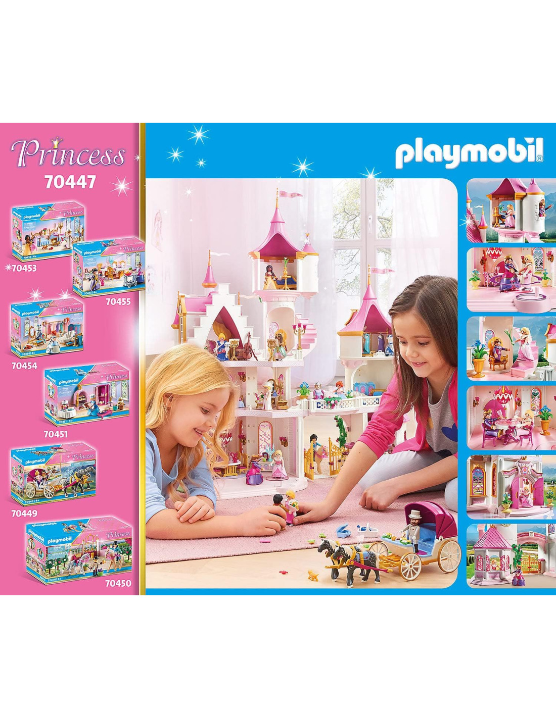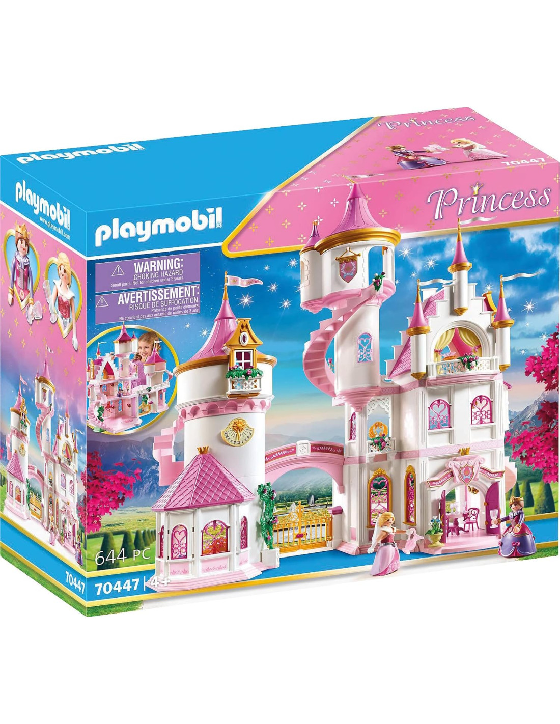 Contenuto: 1x PLAYMOBIL Princess Grande Castello delle Principesse, Play set da 648 pezzi con istruzioni: 1 castello con piattaforma da ballo, 2 personaggi, 645 accessori, Materiale: plastica, Dimensioni: ca. 80x47x82 cm (LxPxA), Peso: ca. 4,6 kg, 70447