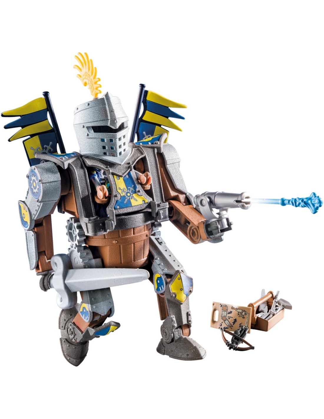Con questo robot da combattimento del mondo di PLAYMOBIL Novelmore, il cavaliere Gizmo Crafton è ben equipaggiato per il Torneo dei Guardiani.