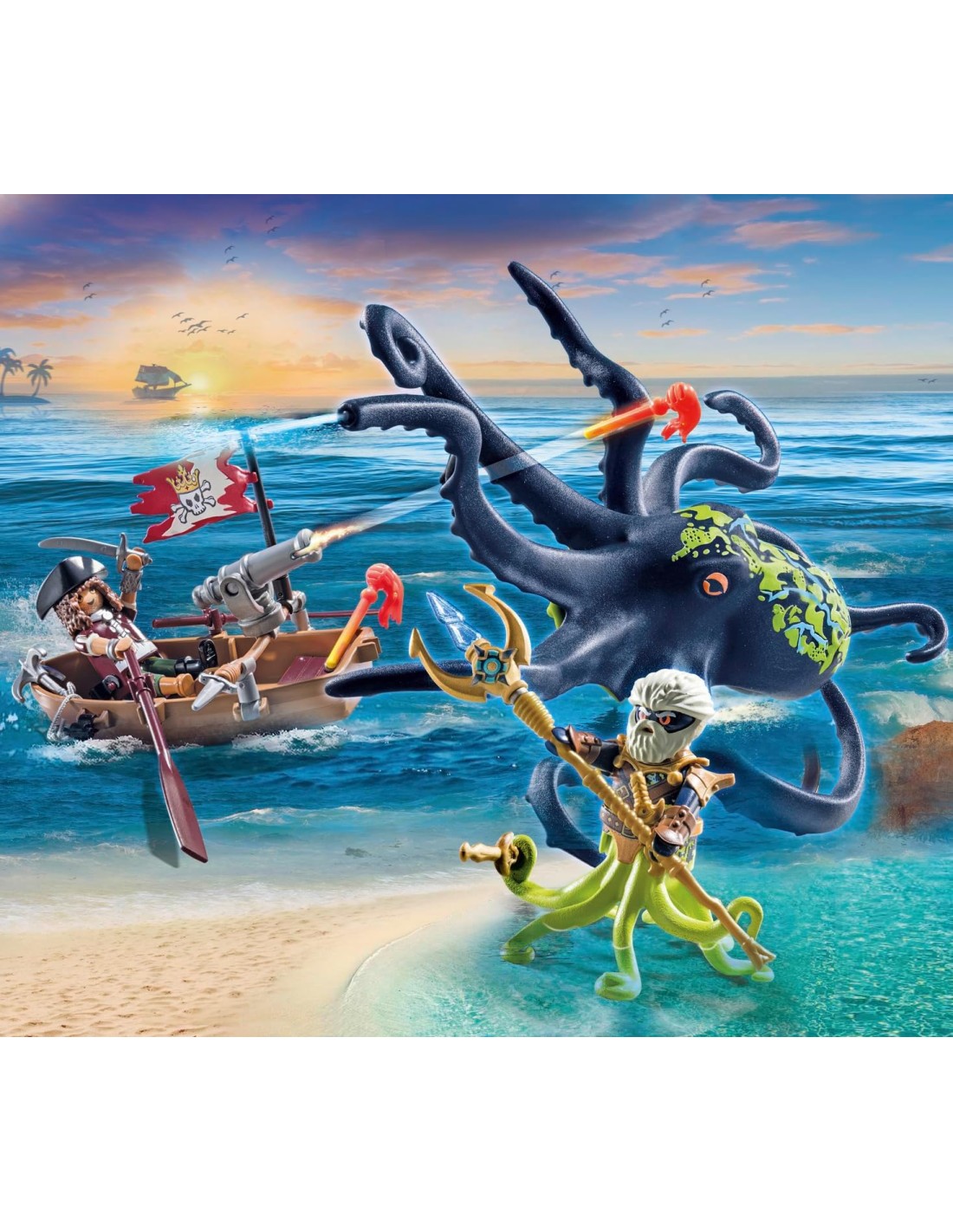 Playmobil Pirates 71419 Pirata contro piovra gigante, Pirati contro Deepers, la piovra ha una vera funzione di spruzzo d'acqua, con molti accessori, giocattolo per bambini dai 4 anni in su