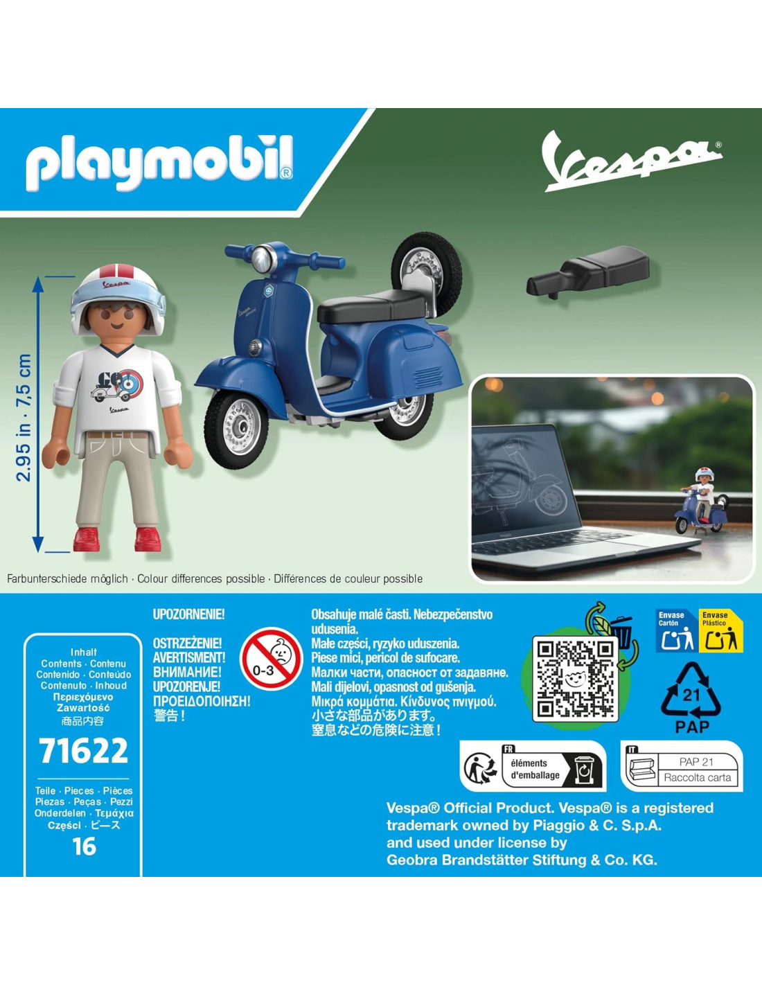 PLAYMOBIL Cars 71622 1969 Vespa 150 Sprint Veloce, blu, modello fedele per collezionisti e appassionati, comprende accessori versatili e ruota di ricambio removibile