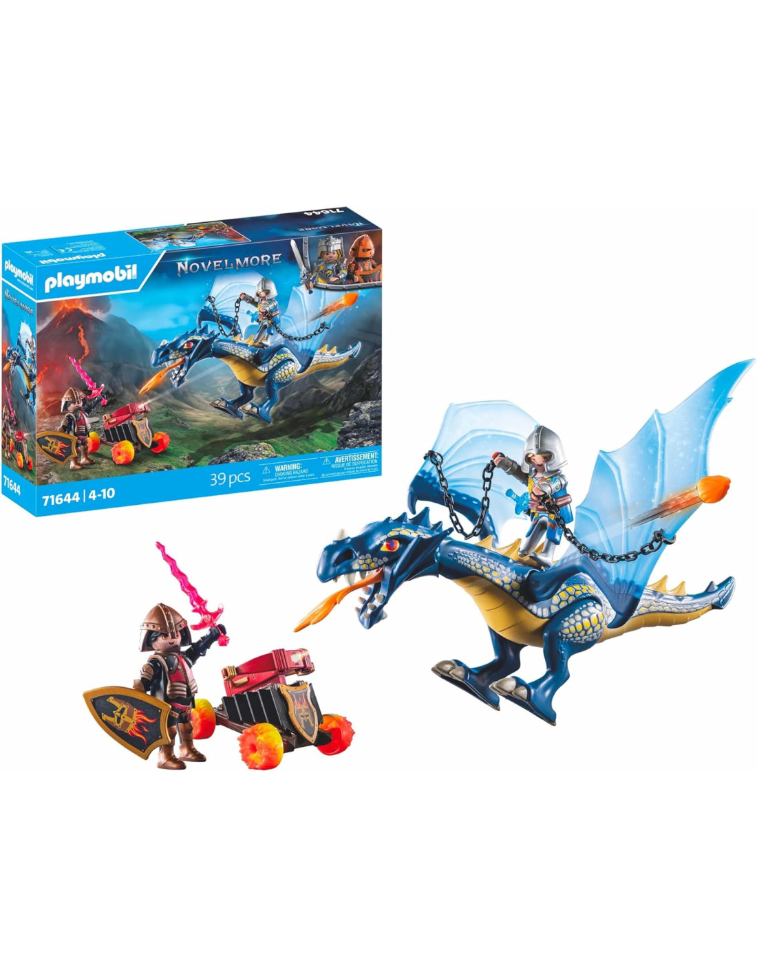Combattimento Aereo Avvincente: Partecipa a battaglie emozionanti con un cavaliere che cavalca il potente drago di Novelmore! Insieme, affrontano un ostile Guerriero di Burnham, schivando abilmente le sue frecce infuocate Perfettamente Equipaggiato: Il set include un drago mobile, elmi da cavaliere, spade, un cannone mobile con proiettili e catene per il trasporto del drago. Perfetto per il gioco di ruolo e avventure entusiasmanti nel mondo di Novelmore! Il playset è adatto ai bambini dai 4 anni in su: le dimensioni dei personaggi sono adeguate alle mani dei più piccoli e danno una piacevole sensazione al tatto grazie ai bordi arrotondati Prodotto di alta qualità. Pulizia dei pezzi solo con acqua e senza l'uso di prodotti chimici Set di gioco con 39 pezzi: 2 personaggi PLAYMOBIL, 1 animale, e molti accessori, Materiale in plastica, LxLxH: 38,5 x 28,4 x 9,4 cm, peso: 499 g, Codice articolo 71644