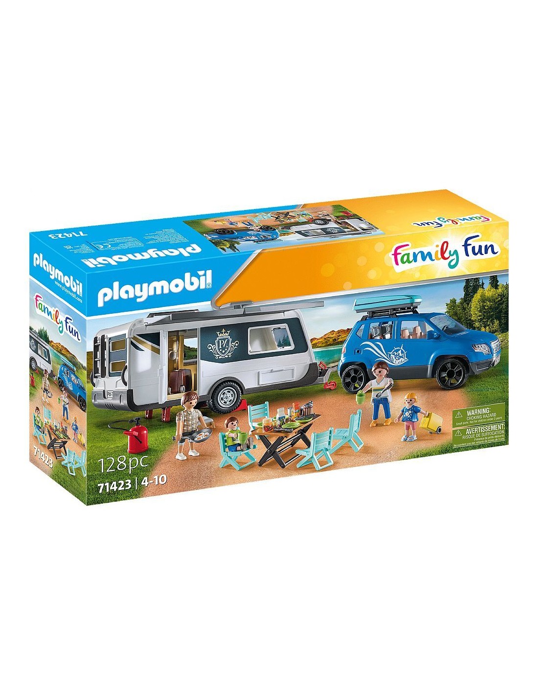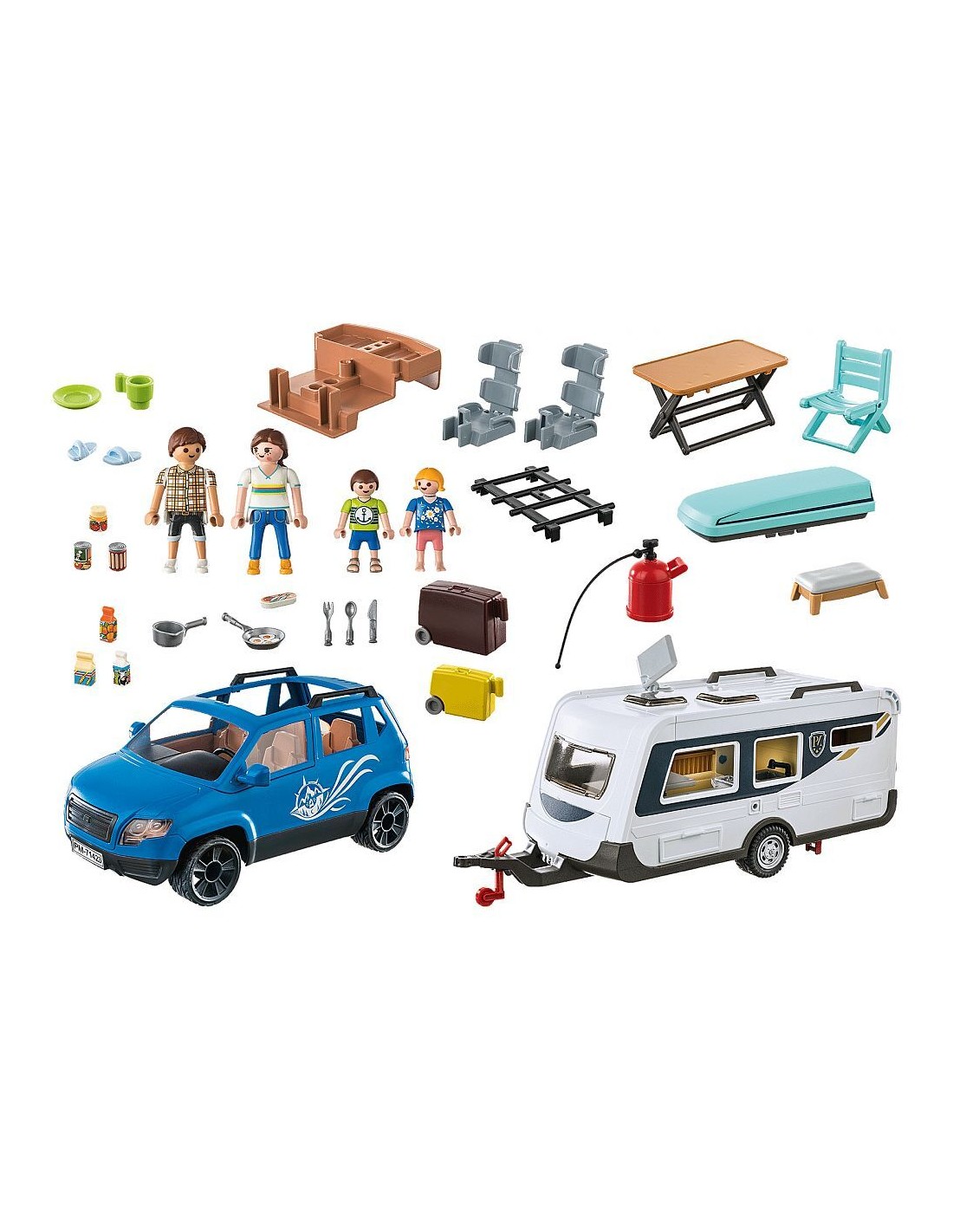 Playmobil Family Fun 71423 Roulotte con auto, Camping, divertimento campeggio versatile nella natura, una vacanza in famiglia attraverso tutto il paese