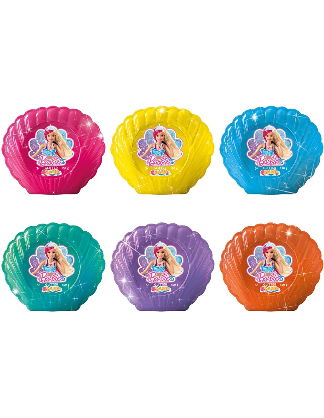La colorata conchiglia di Barbie Con sabbia glitter - 6 colori assortiti - Con una ottima immagine di Barbie - 150 g di sabbia - Da 3 anni in su Contenuto: conchiglie di Barbie in 6 colori assortiti con 150 g di sabbia glitter colorata Percezione e psicomotricità - Coordinazione occhio mano - Manualità fine - Creatività - Curiosità e capacità di osservazione