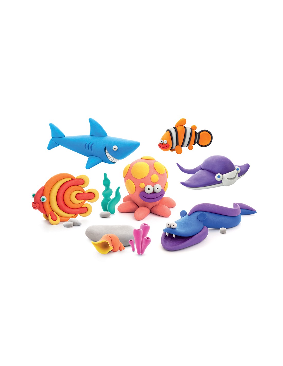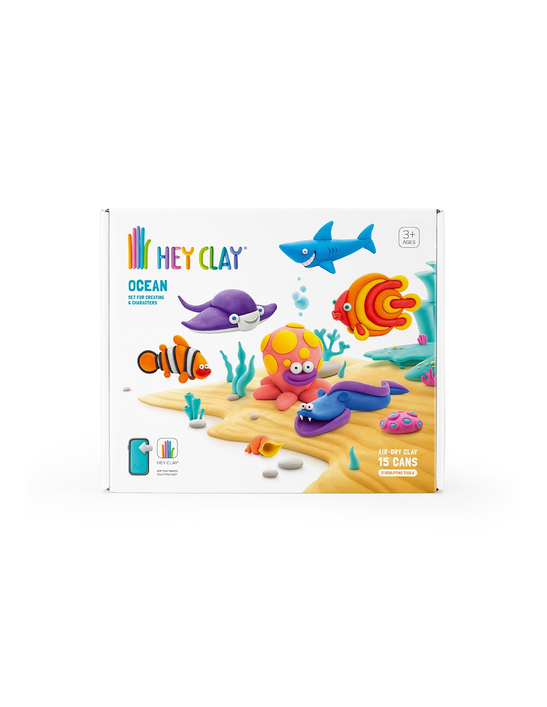 Hey Clay Ocean, pasta modellabile set di base Oceano. Argilla da Modellare per Bambini in confezione da 6 soggetti con 15 colori. Big set da 6 pesci con 2 utensili. Con App interattiva. Atossica