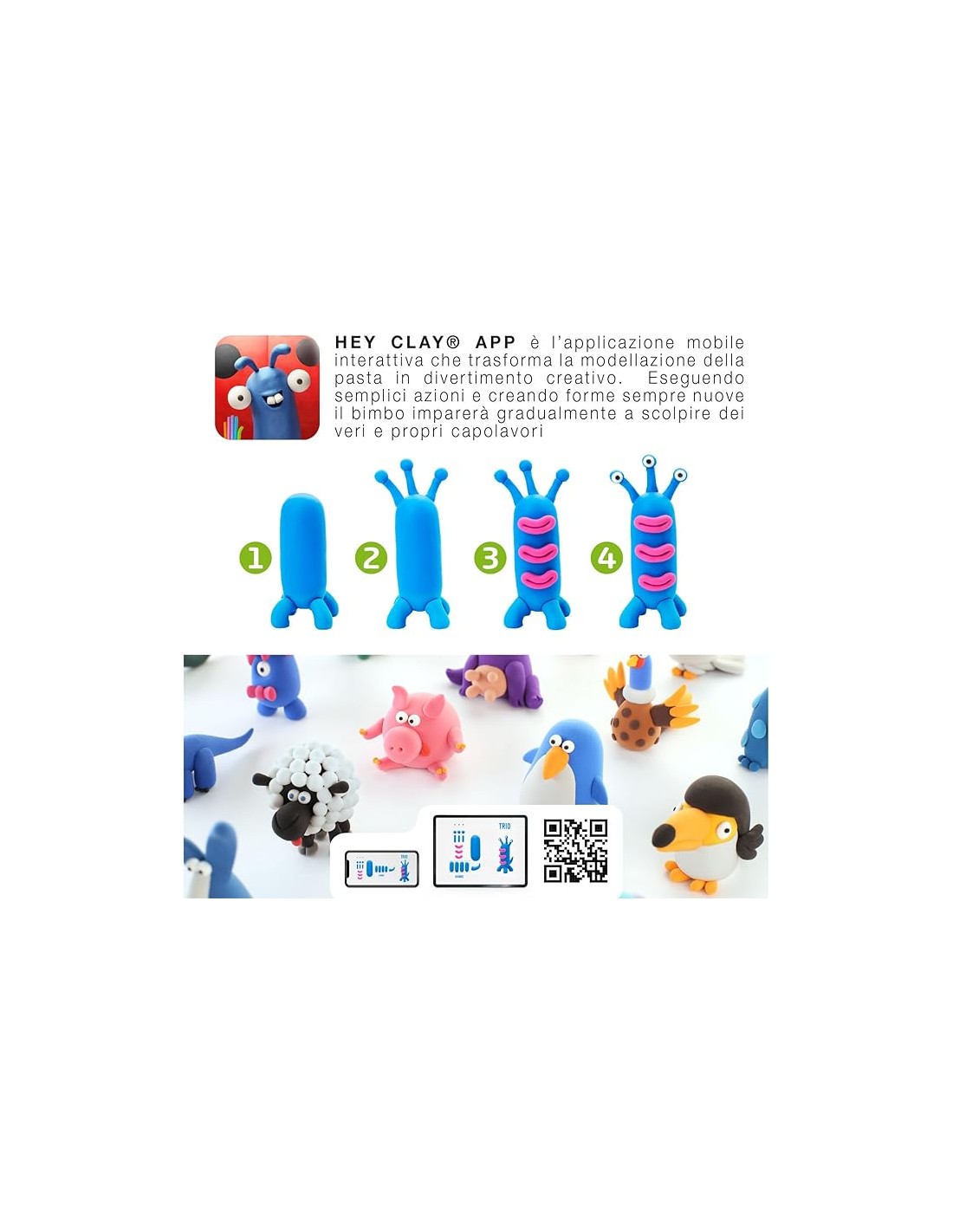 NUOVA FRONTIERA: Hey Clay rappresenta la nuova frontiera della plastilina colorata da modellazione. Un polimero di ultima generazione leggero, morbido, duttile e piacevole al tatto, che permette di trasmettere con precisione la personalità dei personaggi scolpiti. 18 COLORI BRILLANTI: l'argilla Hey Clay è disponibile in 18 colorazioni base. Divertiti a mescolarle fra loro per creare uno spettro di colori praticamente infinito! COME FUNZIONA: la pasta modellabile bambini si attiva scaldandola e lavorandola con le mani. Si solidifica stando all'aria in 20 minuti. Completamente asciutta in 24 ore. La figura non si scioglierà, mantenendo la forma data. Adatto dai 3 anni in su. SICURA: la pasta modellabile Hey Clay è atossica e creata nel totale rispetto dei rigidi standard Comunitari. Non si attacca alle mani o agli oggetti. Ciascun colore viene spedito in un apposito contenitore dedicato che ne preserva la durata per molteplici usi. LIBERA LA FANTASIA: questa plastilina bambini di nuova generazione permetterà di scatenare la fantasia dei vostri bambini per dare vita a migliaia di personaggi! E se non basta... HEY CLAY APP: è l'applicazione mobile interattiva che trasforma la modellazione della pasta in divertimento creativo. Ricca di tutorial passo passo per aiutare i bambini a scolpire dei veri e propri capolavori!
