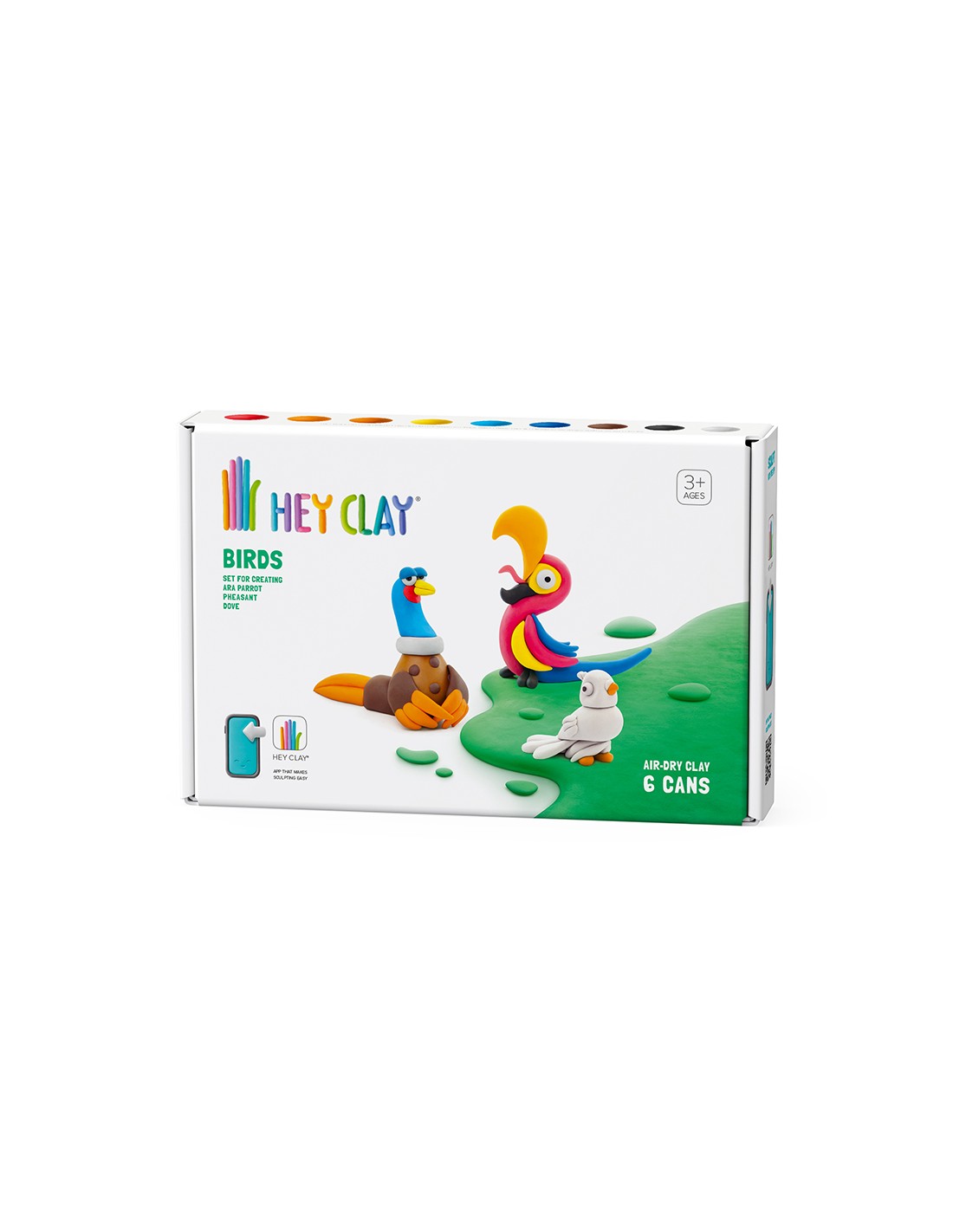 Hey Clay Birds 1, pasta modellabile medium set Uccelli 1. Argilla da Modellare per Bambini in confezione da 3 soggetti con 6 colori. Set medio da 3 uccelli e 6 colori. Con App interattiva. Atossica