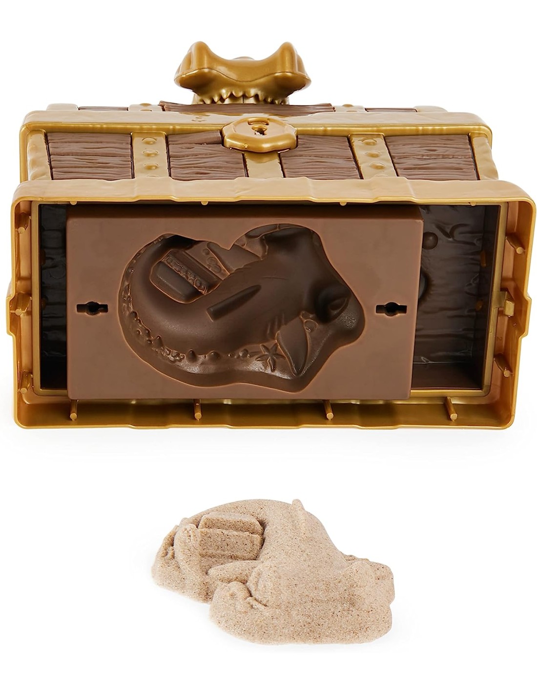 Questo divertente kit Kinetic Sand contiene 9 tesori da scoprire nascosti nei 6 strati segreti del forziere del tesoro. Trova attrezzi, gemme, sabbia rara e molto altro ancora.