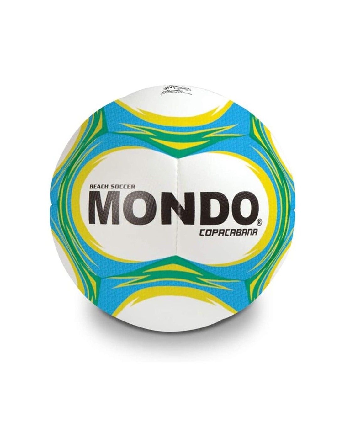 Grafica e colori - Il pallone da beach soccer COPACABANA come tutti i palloni della linea Mondo Sport in generale cercano di sfruttare una combinazione di 3 colori per migliorare la visibilità e inoltre per aiutare a seguire più facilmente il movimento della palla. Questo pallone è di colore bianco azzurro giallo.