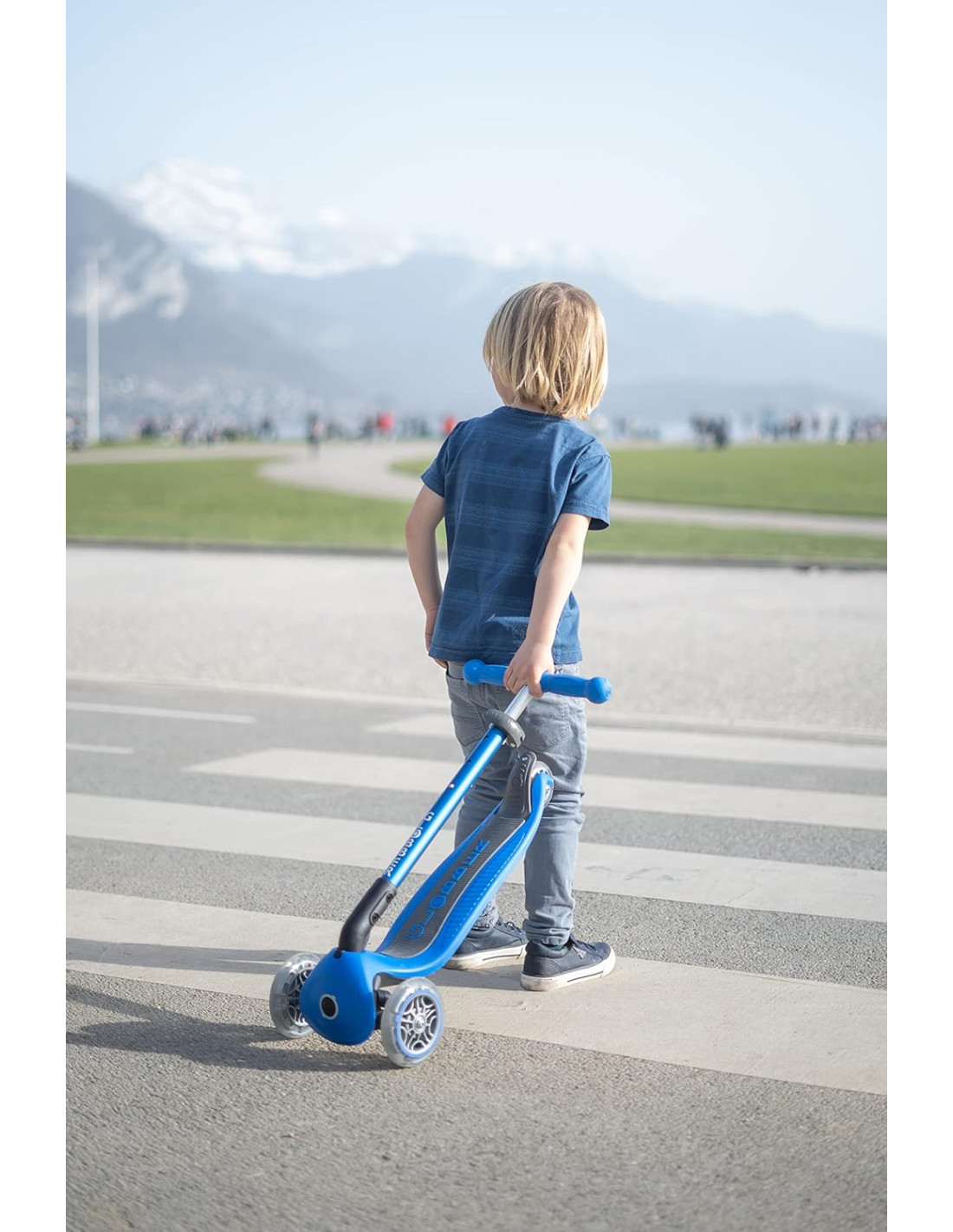 Globber - Scooter 3 Ruote Ripiegabile Con Luci Blue