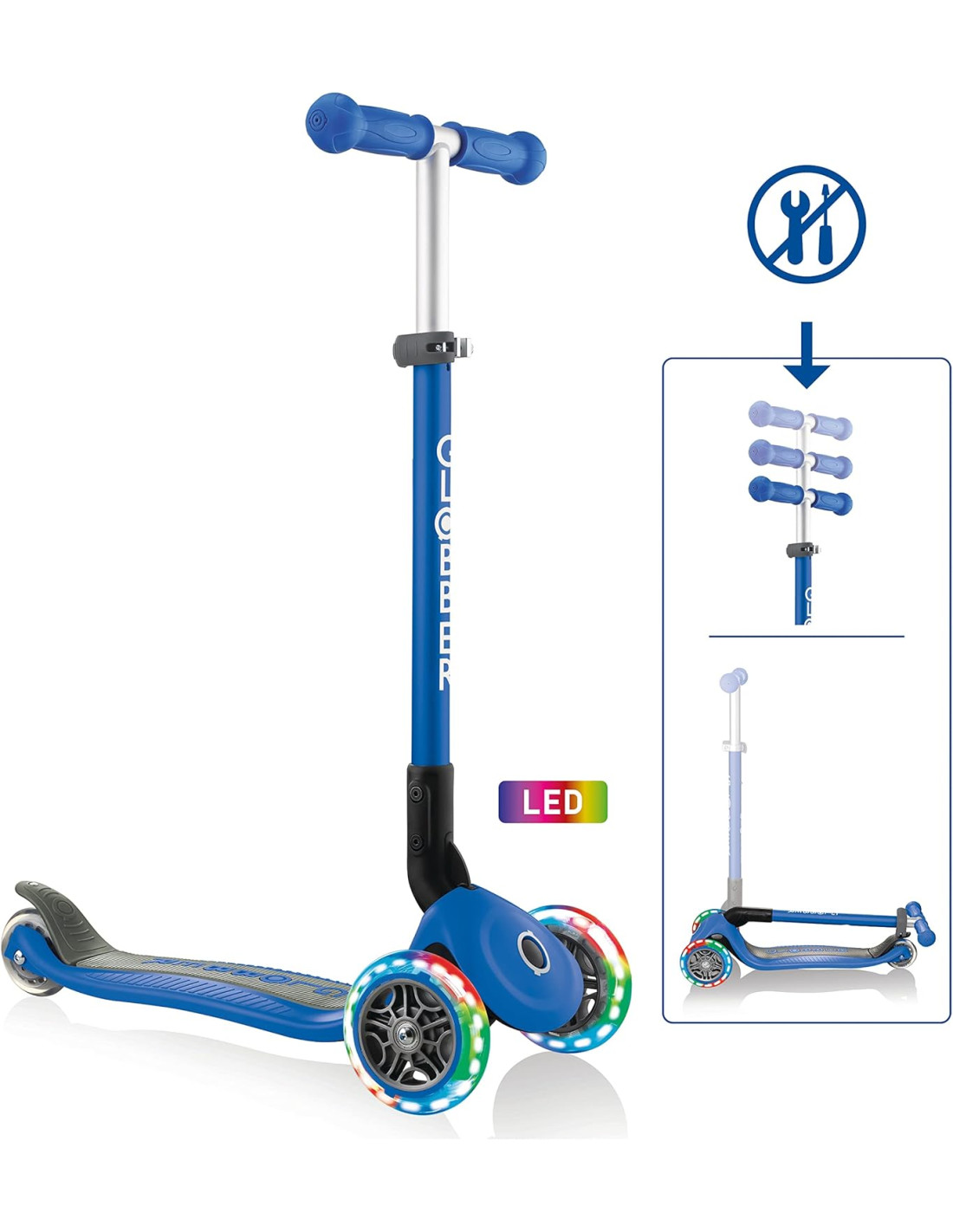 Globber - Scooter 3 ruote Navy Blue con luci ripieghevole